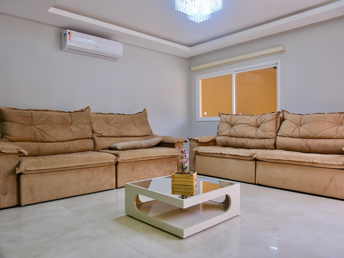 季節限定の家は、ソファベッドと補助ベッドを備えた寝室/リビングルーム1室、ダブルベッドとクローゼットを備えた寝室1室、設備の整ったキッチン、専用バスルーム1室、扇風機、テーブルとハンモックを備えたバルコニー、共有タンク、干し衣ライン、ホース、掃除用具を備えています。 アイロンとアイロン台を無料で借りることができます。 スマートテレビが利用可能で、Netflix、Max、Globoplayに無料でアクセスできます。 共有の屋内駐車場を提供しています。 無料WiFiを提供しています。