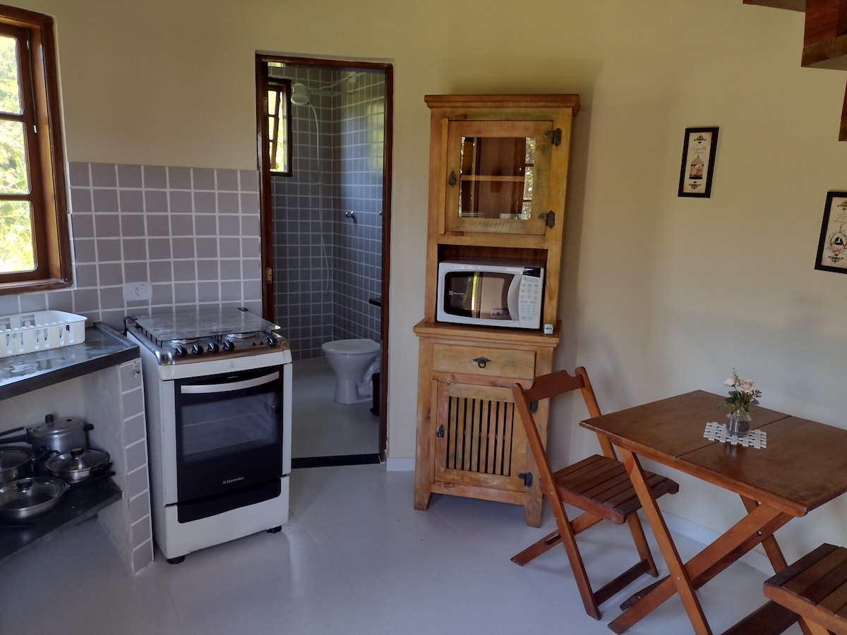 ここでのご滞在は、特別な体験となることでしょう。 シャレ・ダ・レゼルヴァに魅了されたゲストの誠実な声をお読みください。 自然と調和した居心地の良い場所です。 ビーチから800mの安全なコンドミニアム(イリャベラとサン・セバスチャンの運河地域)。 お風呂とダイニングテーブルを備えたデッキ。 森を望むバーベキューエリアと庭。 森林、鳥のさえずり、小川の音を眺め、リラックスしてください。 カップルに最適です。4名様にぴったりです。 Wi-Fiとテレビ。