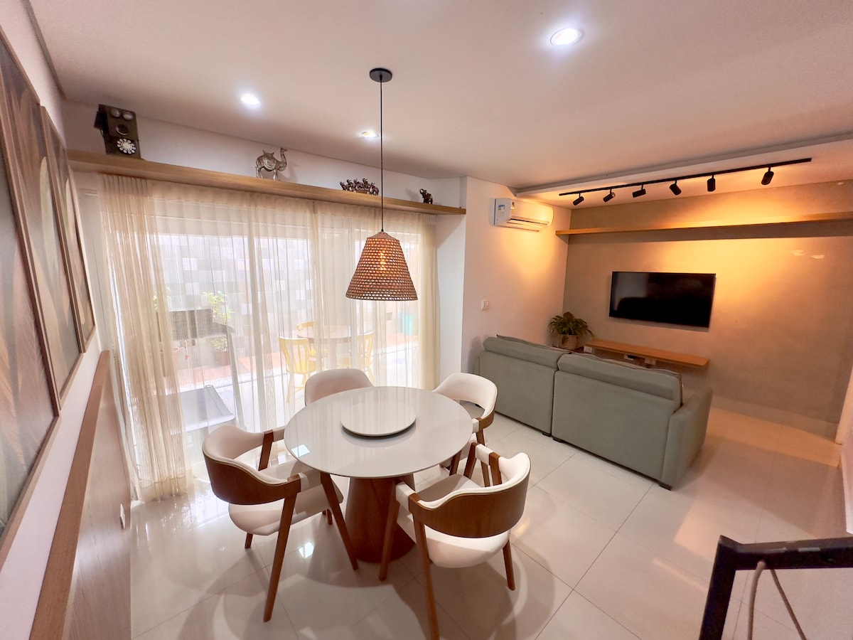 Resort Ilha da MadeiraのDuplex Coberturaには、3つの寝室、リビングルーム3室、キッチン、グルメバルコニー、2つのスペースがあります。 100 mのビーチサービス、エアコンと屋外プール、おもちゃの図書館、ジム、映画館、パーティーとゲームルーム、テニスコート、マルチスポーツ、砂浜とビーチテニス、ドライ/ウェットサウナ、スパ、美容院、24時間対応のフロント、毎日の整理整頓/清掃、朝食、ランチとディナーは含まれていません。 衛生のためにtroca.Toalhas/itensなしでご利用いただけるすべてのベッドリネンは含まれていません