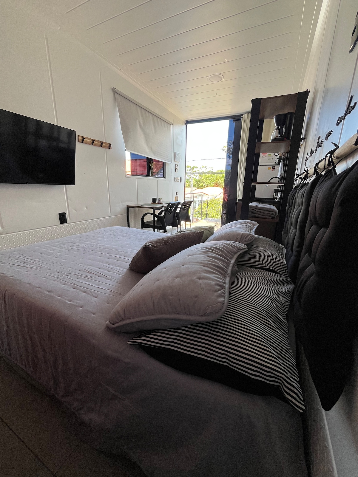 新しく清潔で快適なワンルームで、エアコンが備わっており、ビーチからわずか30メートルです。 カンペチェとモロ・ダス・ペドラスのビーチの間にあります。 スタジオには、32インチのスマートテレビ、200 MbのWi-Fi、フルキッチン(冷蔵庫、冷凍庫、コンロ、ガスオーブン、電子レンジ、電気オーブン、コーヒーメーカー)が備わっています。 リビングルームは一体型で、とても快適なソファベッドがあり、3人目のゲストを収容できます。 ビーチは静かで、サーフィン、ダイビング、カイトサーフィン、または海辺でのんびりするのに最適です。