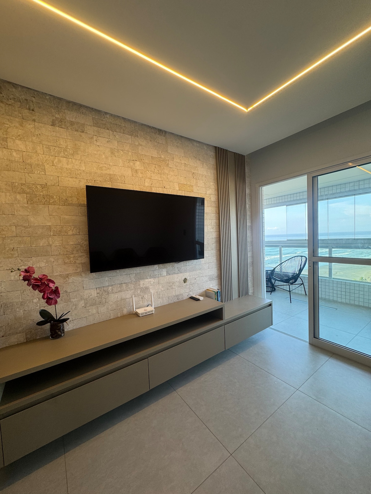 リビングと寝室にエアコンが設置されたモダンなアパートメント。設備の整ったキッチン、コンロ、オーブン、電子レンジ、スマートテレビ、Netflix、Wi-Fi、サントスビーチの絶景を望む広いバルコニー。 コンドミニアムには、2つの素晴らしいプール、1つは温水プール、もう1つは海に面したインフィニティエッジプールを備えた完全なレジャーエリアがあります。