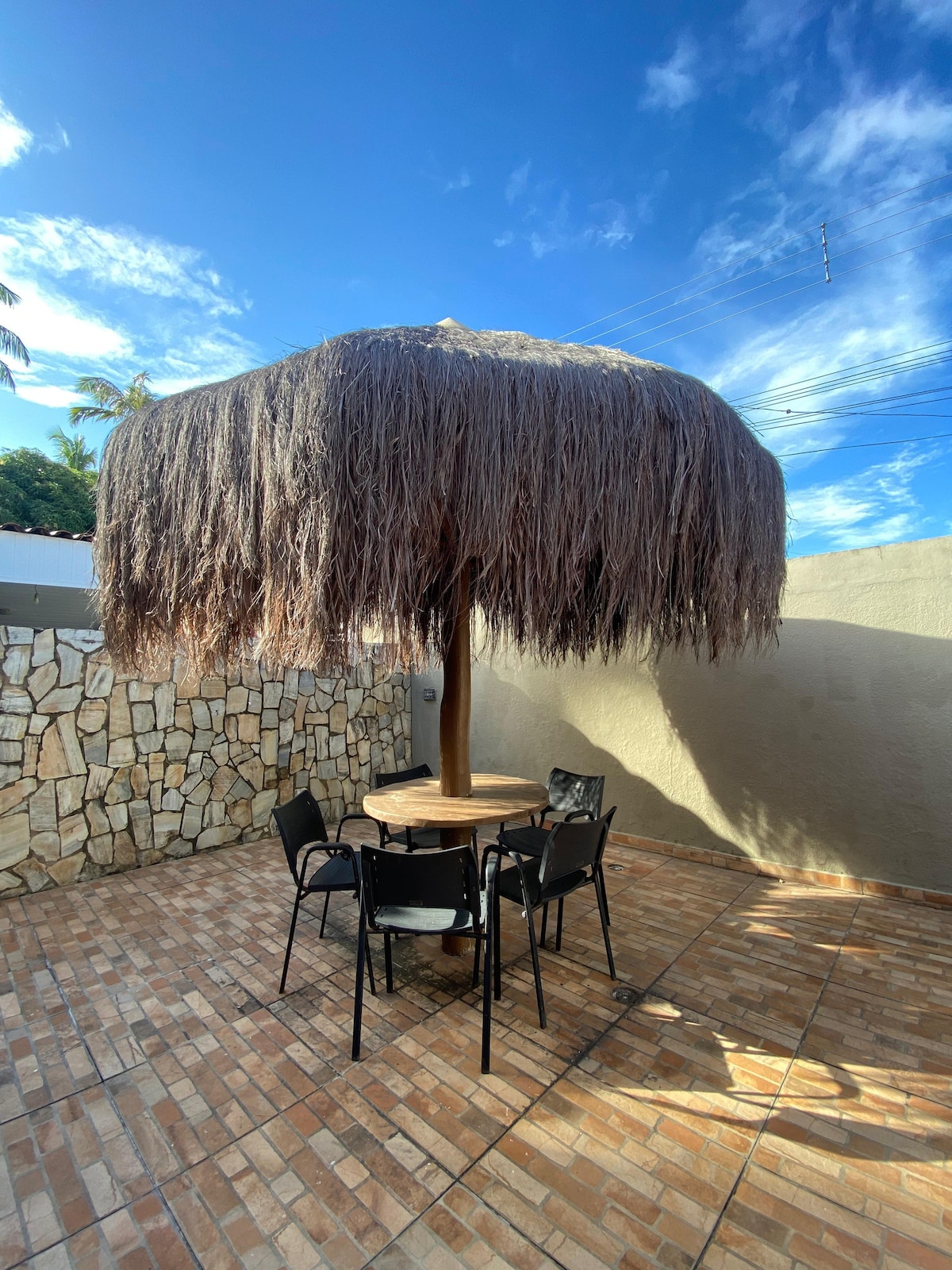 家は快適で、3つのベッドルームがあり、2つはバルコニー付きのスイートで、上階(階段でアクセス)、リビング/ダイニング、シャワーとバーベキューエリア、サービスエリア、家電と調理器具を備えたキッチンがあります。 また、家全体へのアクセスと車1台分の専用駐車場に加えて、コンドミニアム共有の屋外レジャーエリア(プールとバーベキューセット)をご利用いただけます。 リビングルームにはWi-Fiがあり、寝室には新しいエアコンがあります。