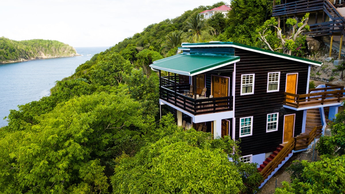 Constructed of Greenheart and cement blocks, this home embodies the essence of Caribbean living. Downstairs, guests can unwind in the bar and lounge, immersing themselves in the tranquil Saint Lucian nightlife alongside the locals.