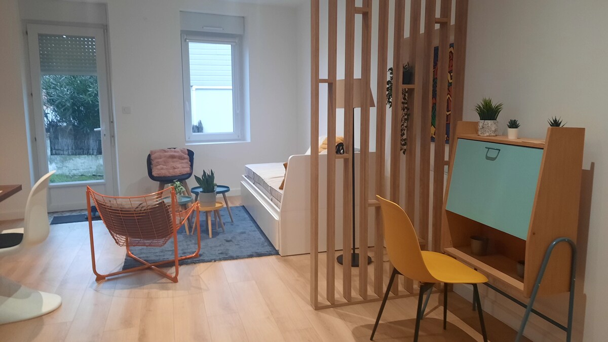 海での素晴らしい滞在のために! レジデンス内にある共用庭園付きの、リフォームされた素敵な小さな2部屋 中心部に位置し、ビーチ、海岸沿いの小道、ショップ、レストラン、映画館などすべて徒歩で行けます。建物の後ろには無料駐車場があります。 海から200mの場所にあり、完全な静寂の中、遠くの波の音だけが聞こえます。 清掃料金には、ベッドリネンとタオルの提供が含まれています 1階の付属建物は鍵がかかっており、自転車を置くことができます