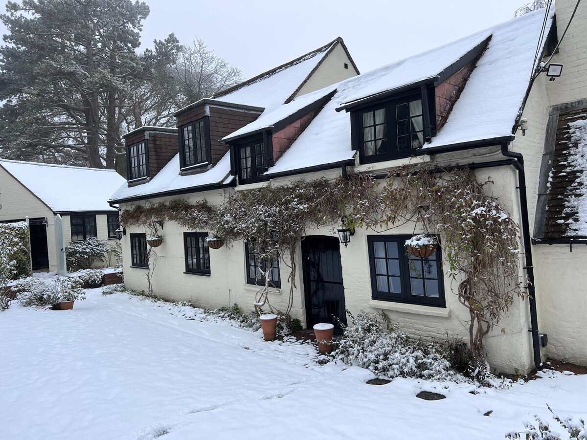 チルターンズの端にある豪華な独立した別荘は、静かな田舎にあり、ジャグジーから楽しむことができます。M40までわずか5分、オックスフォードパークアンドライドまで15分、ロンドンへの電車で45分で行ける駅まで15分です。 居心地の良いラウンジ、薪ストーブ、オーダーメイドのキッチン、床下暖房を備えたリラックスに最適な場所です。 2階にはスーパーキングサイズのベッド、座席エリア、床暖房付きの豪華な浴室、バルコニー、ジャグジーが備わっています。