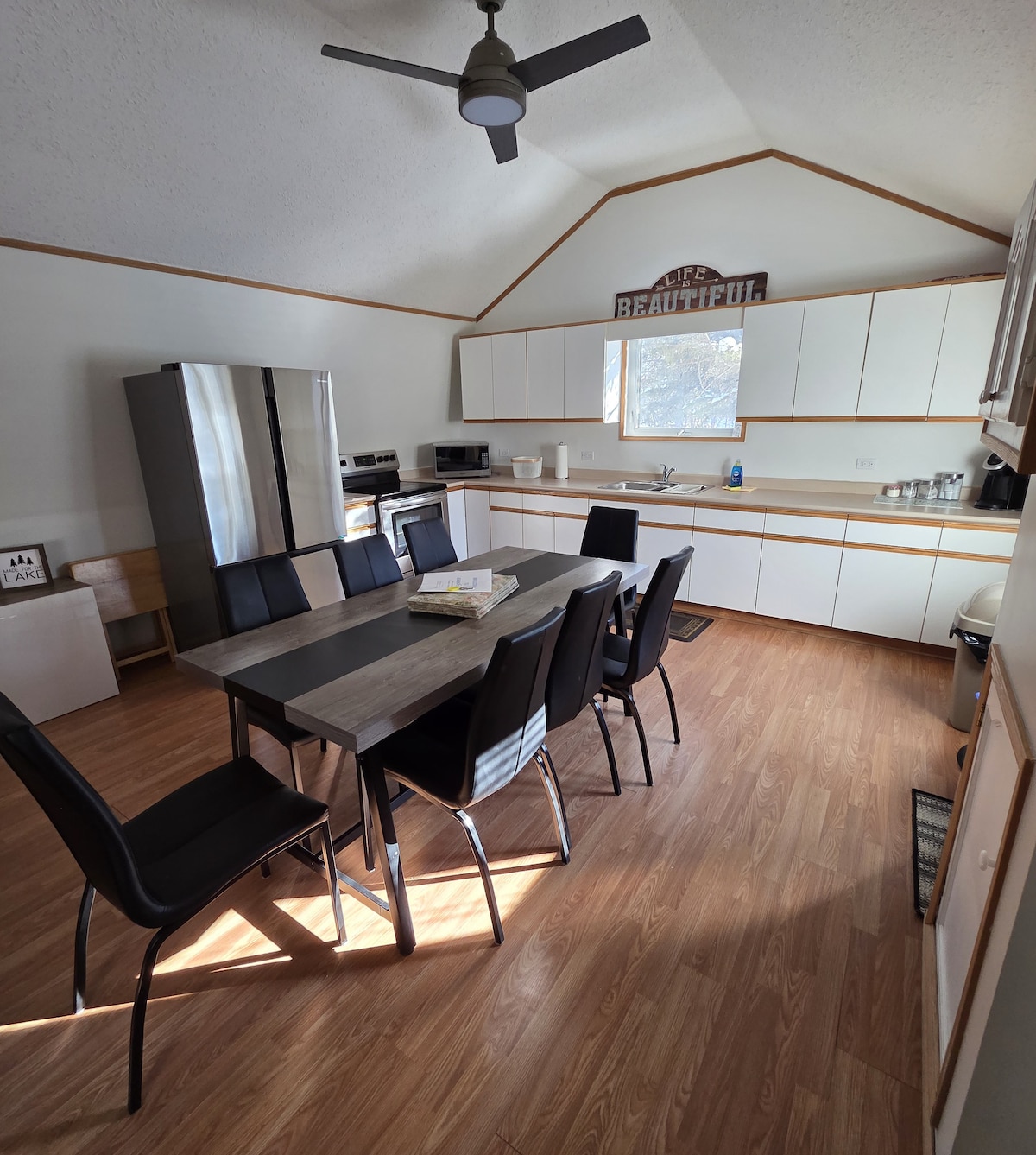 冬の予約/ 2026年春/夏/秋の予約 家族みんなで、この素晴らしい全面改装された4シーズンレイクフロントキャビンに来てください。スノーモービル、スケート(シャベルが必要です)、スノーシュー、クロスカントリースキー、アイスフィッシング、冬のウォーキングをお楽しみください。 夏は水泳、ビーチ、カヤック、のんびりした午後。寝室5室、クイーンベッド8台、フルバスルーム2室、洗濯機・乾燥機。オープン機能キッチン/アイランドシーティング= 4。屋内ダイニングテーブル= 10人。デッキダイニング= 10人以上。 ***長い週末の予約は最低3泊です***