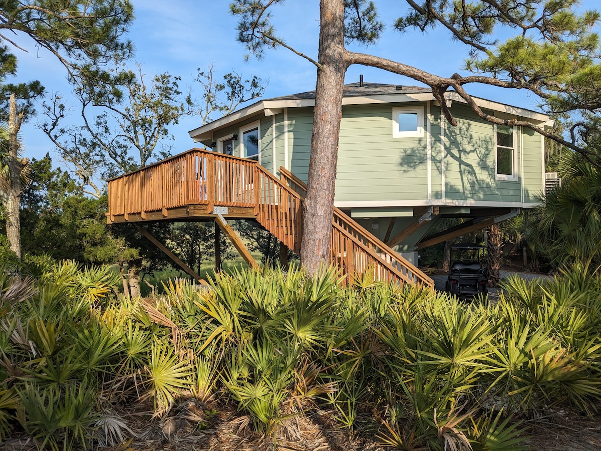 Detox You'll love this unique and romantic escape. Architectual design allows you to fully take in the view of the lowcountry marsh. The backdrop of the bed allows you to fall asleep to the majestic starry filled night sky! Soak your cares away with a bath that will surely relax and unwind you. The background is breathtaking! The outside shower allows you to take in the scenery while enjoying a hot shower. This is an "unplug" listing, no tv or internet access. Hunting Island Beach Pass included.