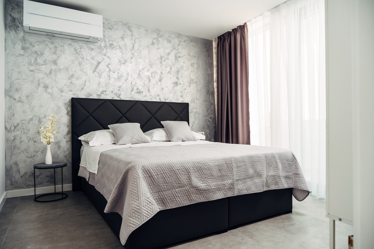 Pool , barbeque space, spa jacuzzi Lovely apartmant ,fully furnished apartmant with a big yard and free parking ,150 m away from the main square, center,free wi-fi, air conditioner,LCD tv, fully furnished kitchen, and bathroom with washer. The beach is 10 minutes away on foot.