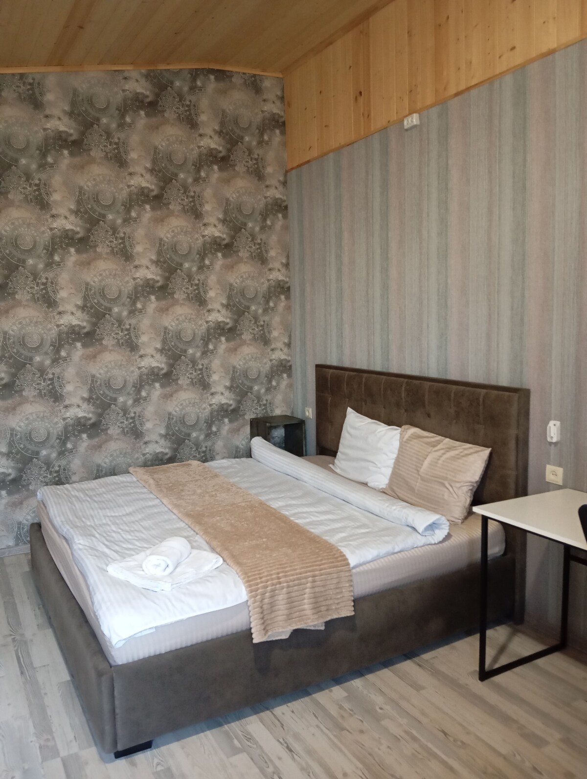 Wake up to soft light and a stunning view of Mount Ararat. This bright and cozy flat is just a few minutes’ walk from Republic Square—close to everything, yet quietly tucked away. With large windows, warm minimalist design, and thoughtful details, it’s the perfect spot to relax, create, or explore the city. Whether you're here for work or wonder, this space welcomes you with calm and charm.