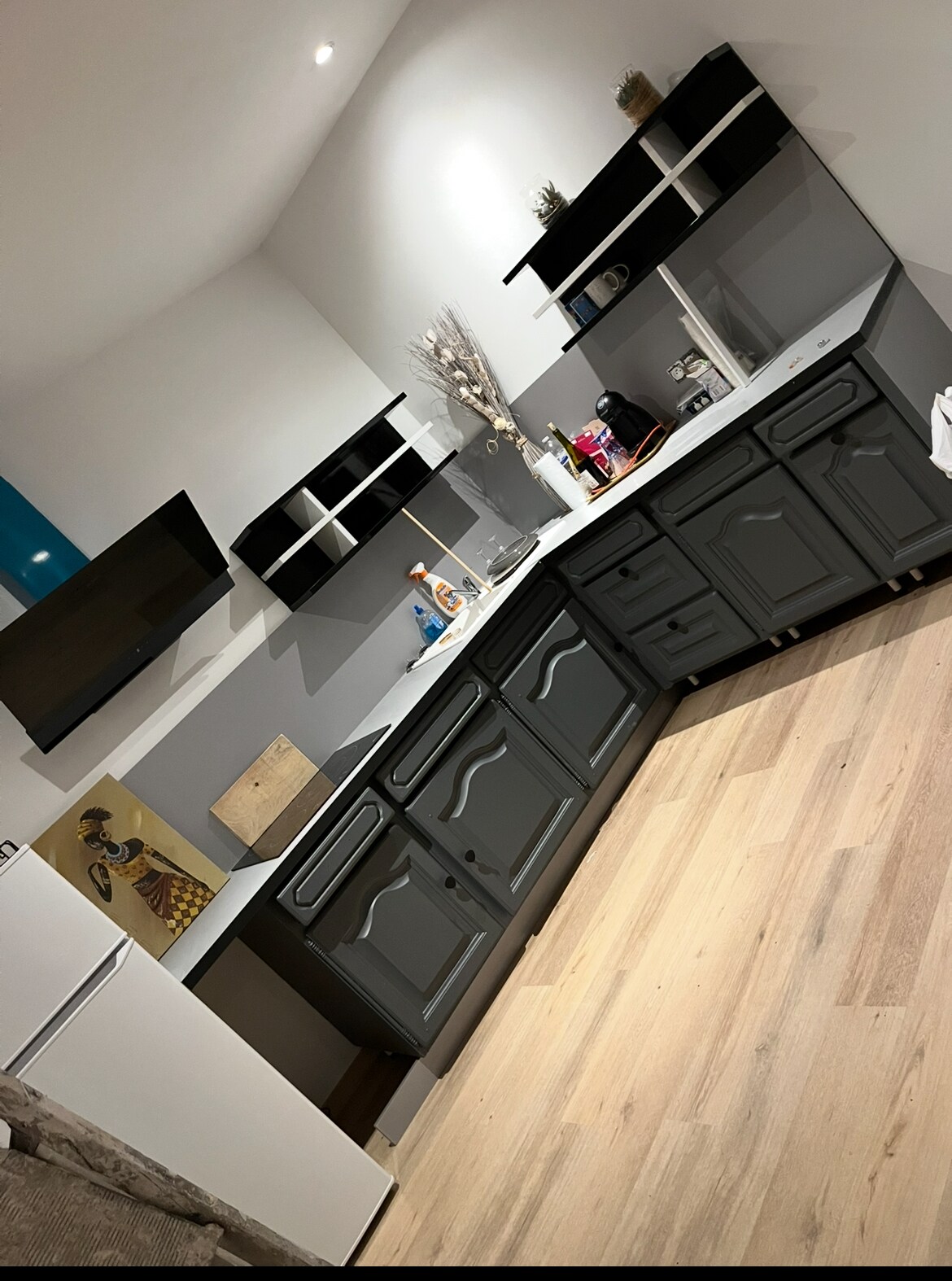 賃貸、60m²の家、閉鎖された中庭と屋外駐車場、コテージの向かい。 1階にキッチン、リビング、暖炉付きのリビングルーム。 1階にシャワールーム1室 2階には、2つの寝室が続き、最初の寝室は160x200のダブルベッドが備わっています。奥には、120x190と90x190のシングルベッド2台を備えた子供部屋があります。 モダンな設備の快適さと古い石造りの魅力を兼ね備えた家です。 暖房は薪ストーブと電気ラジエーターです。