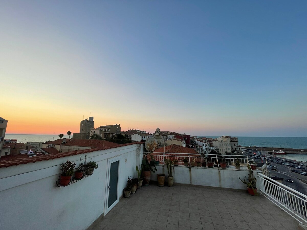 エレベーター付きの2階にあるシーフロントのアパート。2つの寝室と屋外家具のある大きなテラス。設備の整ったキッチン、ランドリーエリア、専用駐車スペース、Wi-Fi。洗濯機、乾燥機、食器洗い機、テレビ、電子レンジ、オーブンなどが含まれます。 もちろん、海辺でプロセッコを楽しむためのワイングラスもあります。 🚲自転車2台を無料でご利用いただけます(予約前のリクエストが必要です。空き状況によりご利用いただけない場合もあります)。