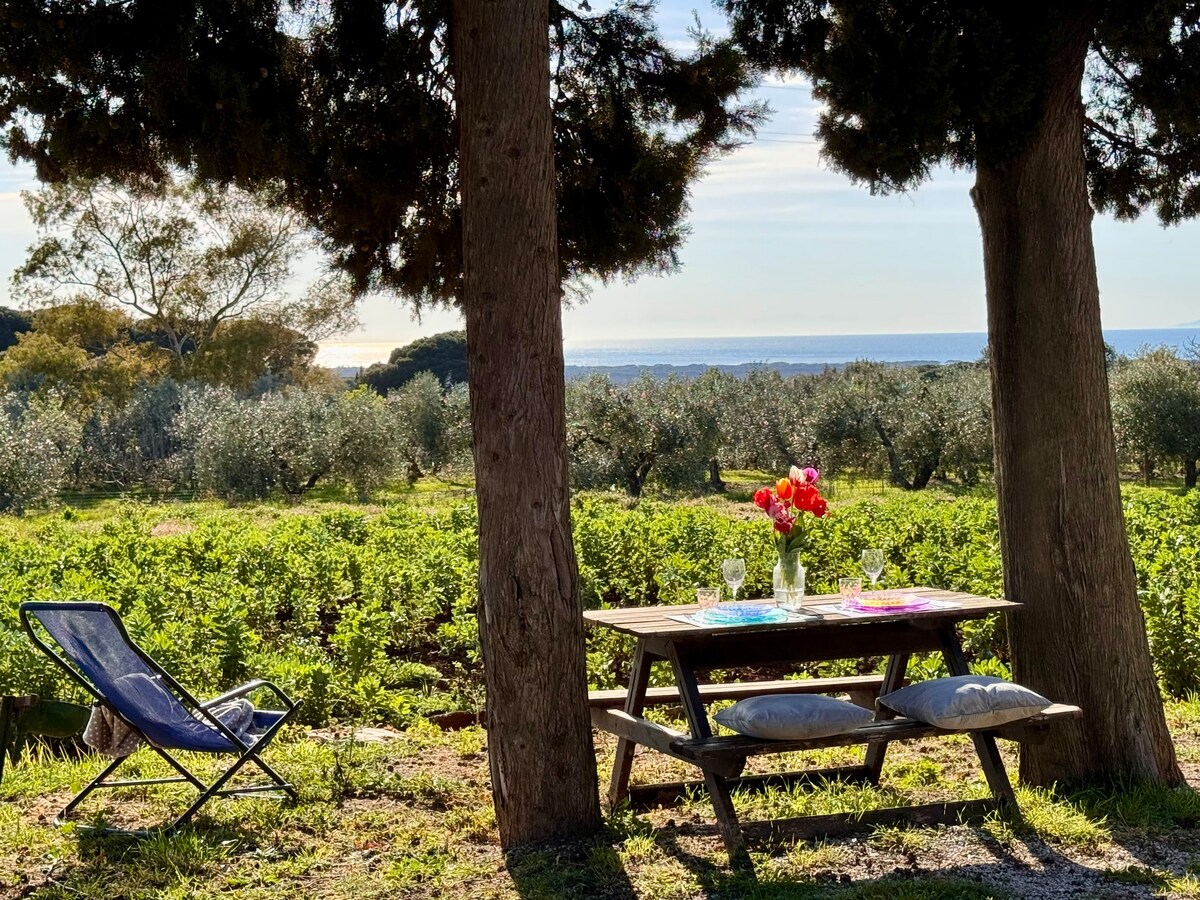 何世紀にもわたるオリーブの木と海の景色に囲まれた静かなL'Ondiana