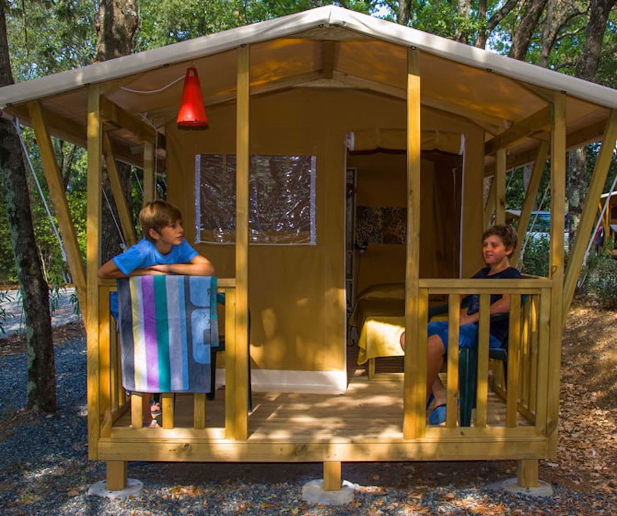 La nostra tenda super accessoriata saprà conquistarti con la sua originalità e la sua atmosfera magica. Arredi in legno semplici ed eleganti e colori tenui e rilassanti ti faranno sentire come se questo alloggio fosse fatto su misura per te. È composta da due camere da letto (una con letto matrimoniale ed una con un letto singolo più un letto a castello), soggiorno con angolo cottura, bagno privato con doccia, e veranda in legno arredata.