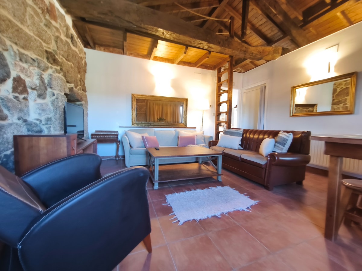 4名様まで宿泊可能な新しく改装された家で、家族旅行に最適です。広い屋外エリア。 オレンセから30km、ビーゴから40km、ポルトガルとの国境に位置するミニョ川の素晴らしい景色を望む、田舎の静かな環境にあります。この場所は、プレヒゲイロの温泉、メルガソ、コルテガダの温泉、リベイロ地域など、数キロ以内の魅力的な場所を訪れることができます。 また、多くのハイキングコースもあります。