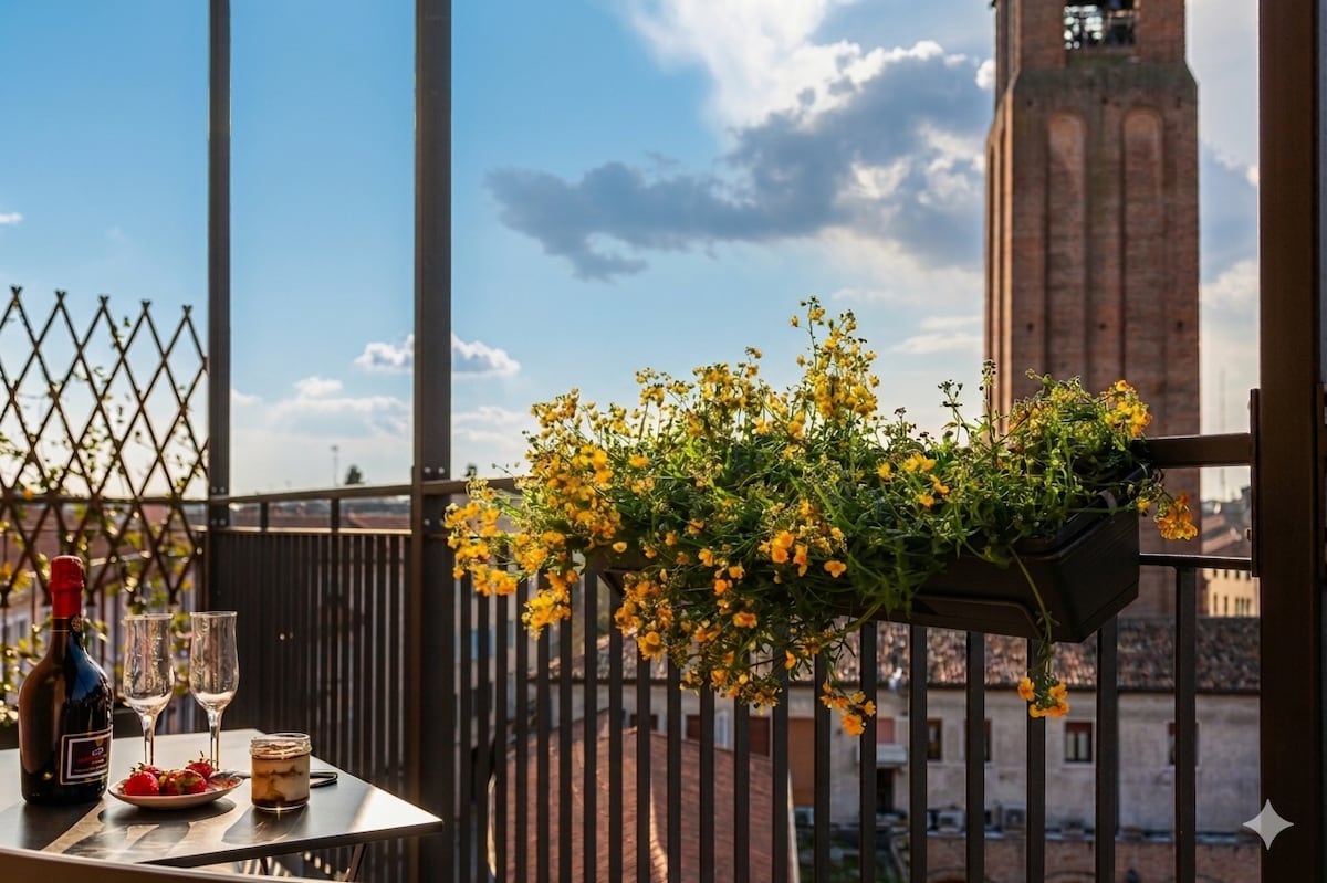 中世の町、トレヴィーゾの中心部に位置するヴィコロ・サン・パンクラツィオには、中央広場からすぐの場所にある「カサ・ディ・テテ」があります。「カサ・ディ・テテ」は、すべての快適さを備えた素晴らしい屋上庭園で飾られています。この庭園には、気候や季節に合わせて、過去と現在の間に吊るされた雰囲気の中でリラックスしたダイニングがあります。 GiuliaさんとMichelaさんは、住んでいる家のような温かみを感じ、楽しい休暇を過ごせるようにしたいと考えています