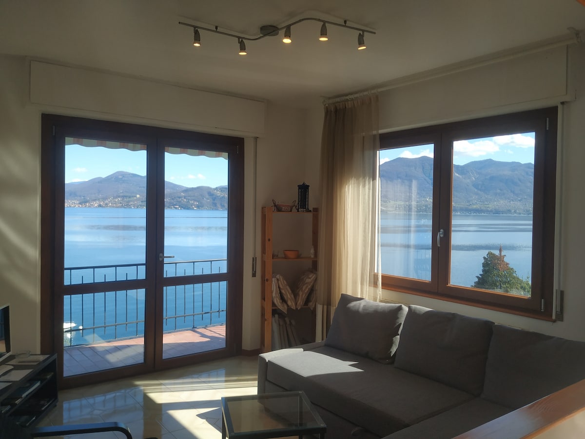専用玄関とテラスを備えたアパートメント。リビングには、ソファ、テレビ、そしてマッジョーレ湖の素晴らしい景色を望む長いバルコニーに面したドアがあります。キッチンには、テーブルとバルコニーがあり、湖の美しい景色を眺めることができます。ダブルベッドルーム2室とバスタブ/シャワー付きバスルームがあります。アパートメントからは、ランドリールームに直接アクセスできます。階段付きの40mの歩道が、駐車場と家を分けています。