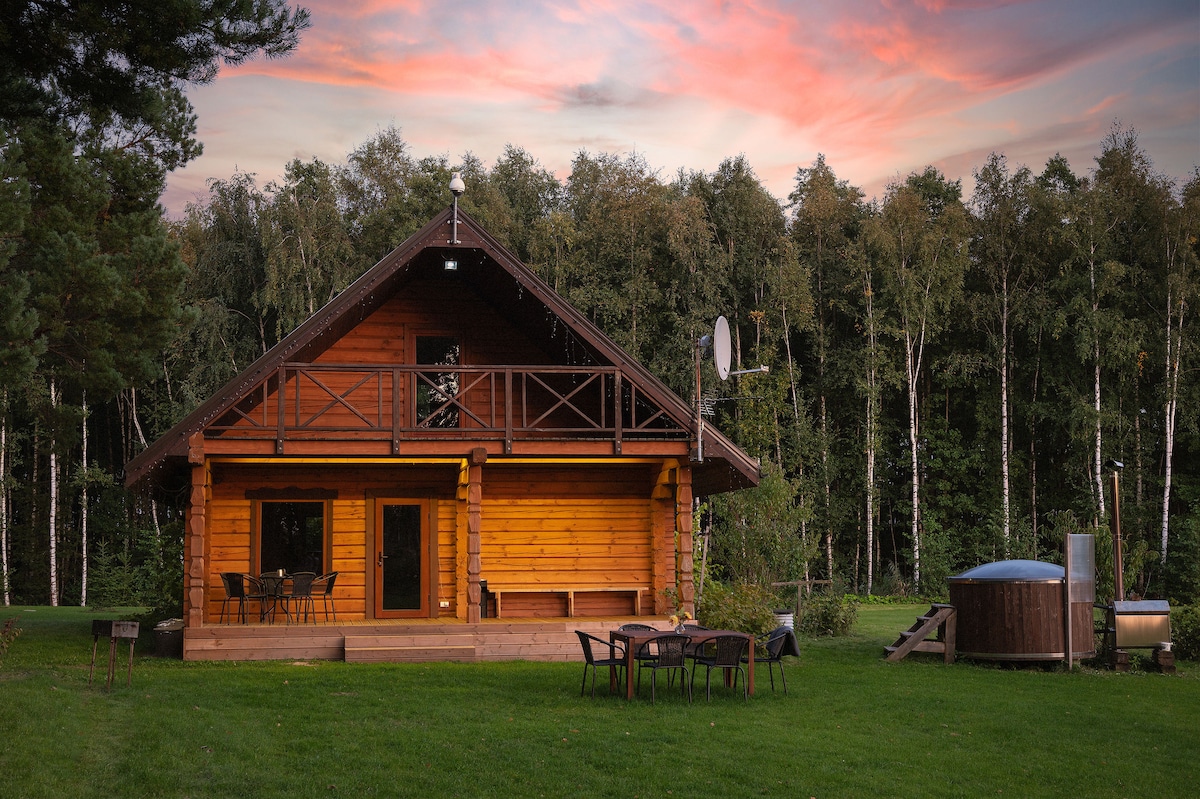 このエリアには合計3つの湖畔のキャビンがあります。 ポンドキャビンは池から15メートル、湖から50メートルの場所にあり、森に囲まれています。 キャビンには必要なアメニティがすべて備わっています。 炭火グリル、カヌー、サウンドシステム、ウォータートランポリンも追加料金なしでお楽しみいただけます。 BBQ用の木材や炭を持参するだけです。 音楽は屋外で午後10時まで再生できます。 ジャグジー(80ユーロ)とサウナ(100ユーロ)もご利用いただけます。最寄りのショップは2km先です。