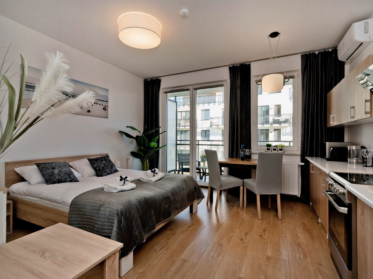 Luksusowy apartament, zlokalizowany zaledwie kilka kroków od plaży nad Zatoką Pucką - jednego z najlepszych w Europie miejsc do uprawiania sportów wodnych oraz tras rowerowych, które ciągną się od końca Półwyspu Helskiego, aż do Trójmiasta. Apartament studio został w pełni zaprojektowany oraz przystosowany do wypoczynku maksymalnie 2 osób.