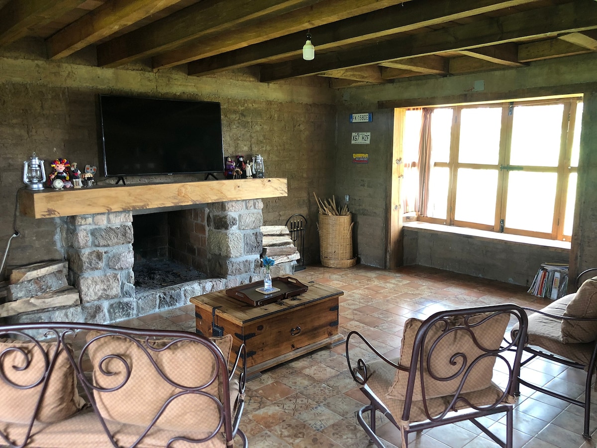 2階建てのキャビンで、広い囲まれた庭があり、家族や友達での滞在に最適です。ペットOK、キャンプファイヤーエリア、暖炉(1日あたりの薪1ロード分込み)、設備の整ったキッチン、2ベッドルーム、各部屋にダブルベッド2台、1.5バーニョ、ミナ・アコスタ博物館からわずか1 kmのレアル・デル・モンテにあり、車でダウンタウンから7分です。 ウアスカ・デ・オカンポの近く15分、ミネラル・デル・チコ40分。ホームオフィスに最適です。