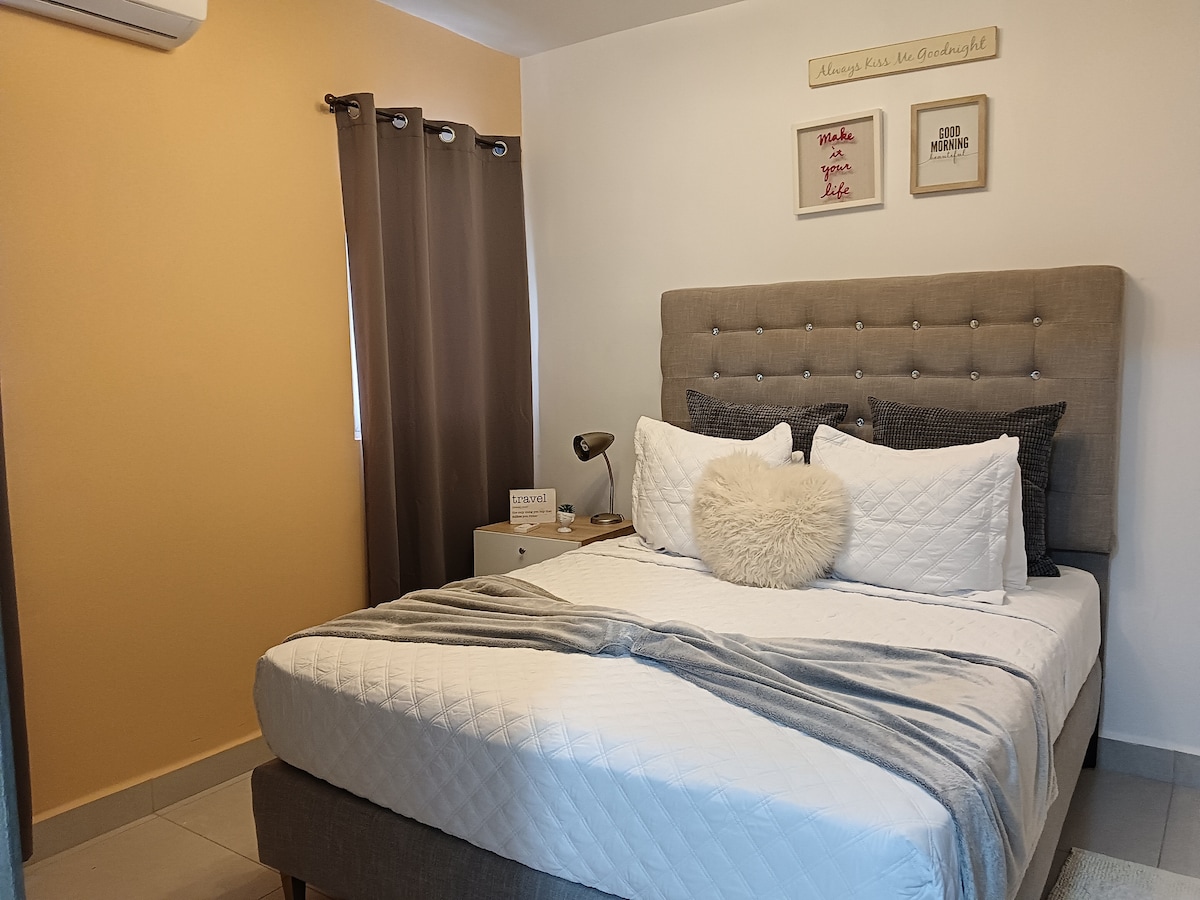 この中心部にある宿泊施設から、すべてに簡単にアクセスできます。快適な3ベッドルーム/ クイーンサイズベッド2台とフルサイズベッド2台、2バスルーム、空港から15分、ビーチから18分、プンタカナのダウンタウンから10分、スーパーマーケット、薬局、レストランから徒歩圏内です。2階にあります。洗濯機と乾燥機、ヘアドライヤー、アイロン、エアコン、Wi-Fi、テレビ。屋外のバスルームとシャワー付きプール、セルフチェックイン、無料駐車場。