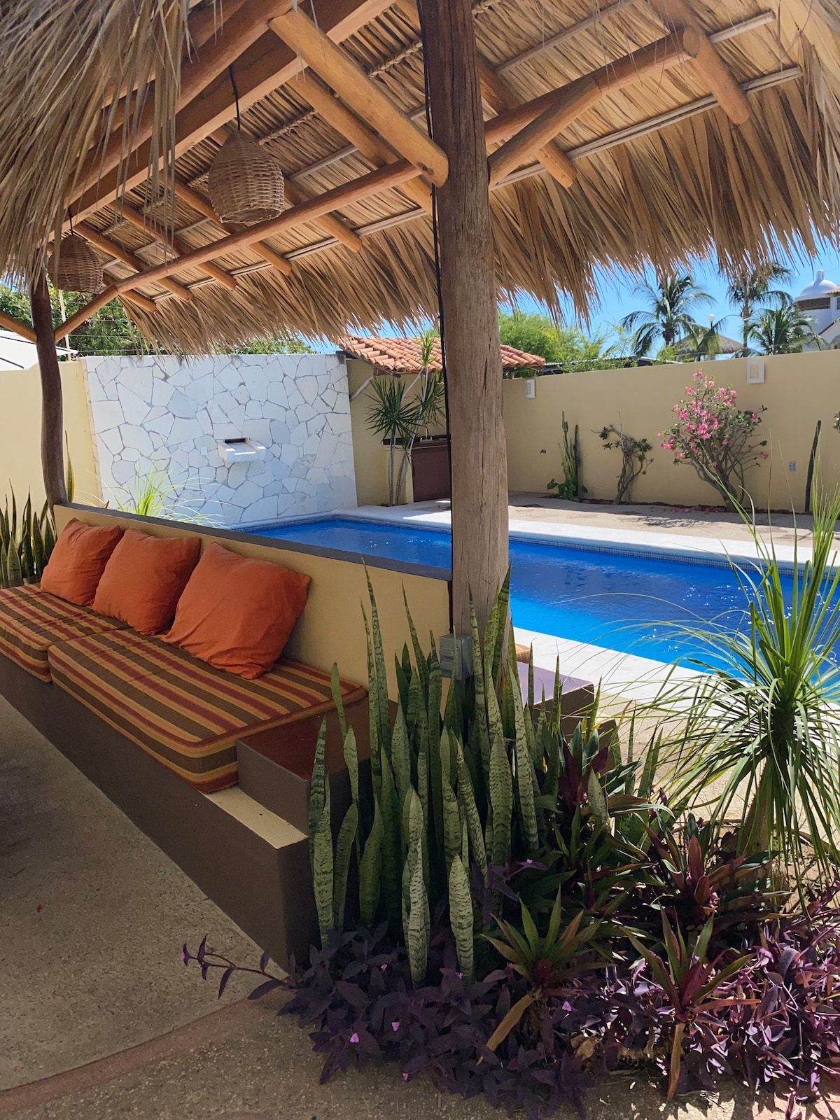 カサ・ミゲルは、美しいカリサリーリョビーチからわずか3分、レストラン、バー、ショップ、ランドリーなどが揃う「ベニート・フアレス」大通りからもわずか3分です。スタジオは2階にあり、海が見えます! 私たちは、美しい世界を大切にするという考えを実践しています。そのため、エネルギー消費量が多いヒーターやエアコンはありません。 また、すべてのプロジェクトで建材を再利用しています!