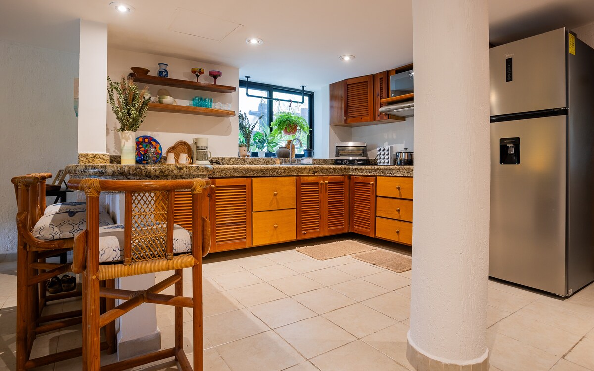 Mayan Residence, en la exclusiva comunidad de Puerto Aventuras, con playa y amenidades, combina modernidad y comodidad, ideal para explorar la Riviera Maya y vivir una experiencia única! ✨ Nuevo, amplio, moderno, equipado 🌅 Vistas abiertas al cielo y la vegetación desde todo el espacio 🌴 Rodeado de palmeras, selva y campo de golf 🌿 Terraza privada 🏊♂️ 2 albercas 🛜 WiFi de alta velocidad 🅿️ Estacionamiento asignado 👨👩👧 Ideal para estancias individuales, pareja o familias pequeñas
