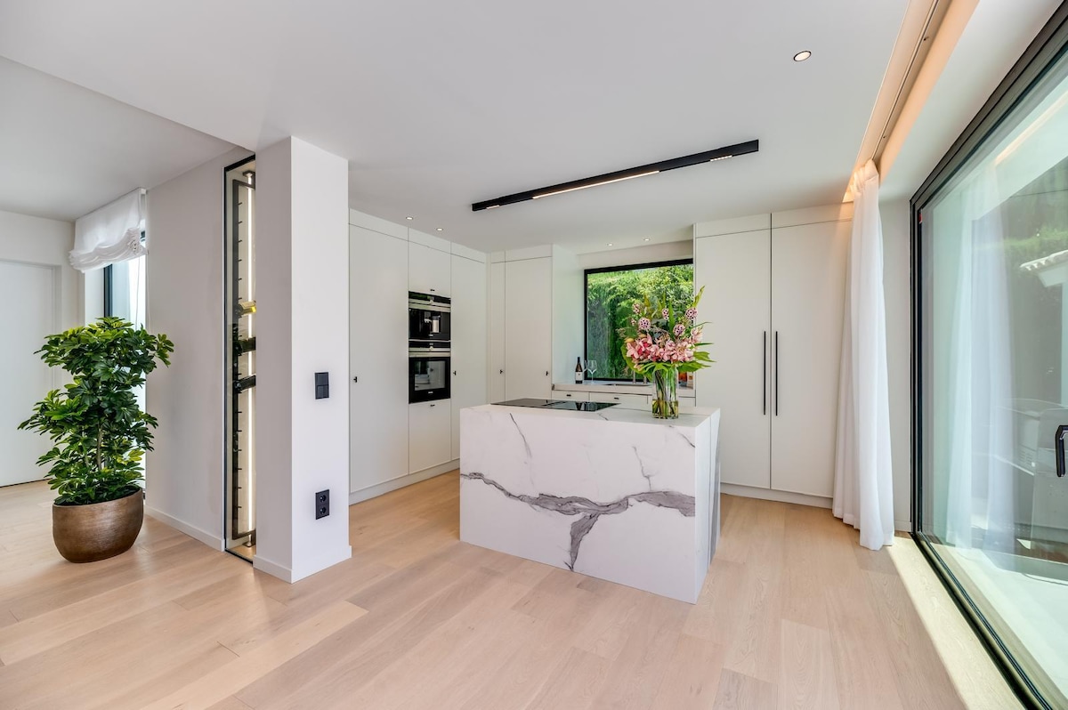 Spend your holidays at the best location in Marbella and Puerto Banus. Just a few steps from the beach on Marbella Golden Mile and a short walk to the luxurious shops and Restaurants in Puerto Banus. This charming 4 bedroom Villa has an open kitchen and bright living room. There are three double bedrooms on the ground floor, one has an en-suite bathroom and the other two share a luxury bathroom. The upper floor houses the master suite with an en-suite bathroom and two beautiful private terraces.
