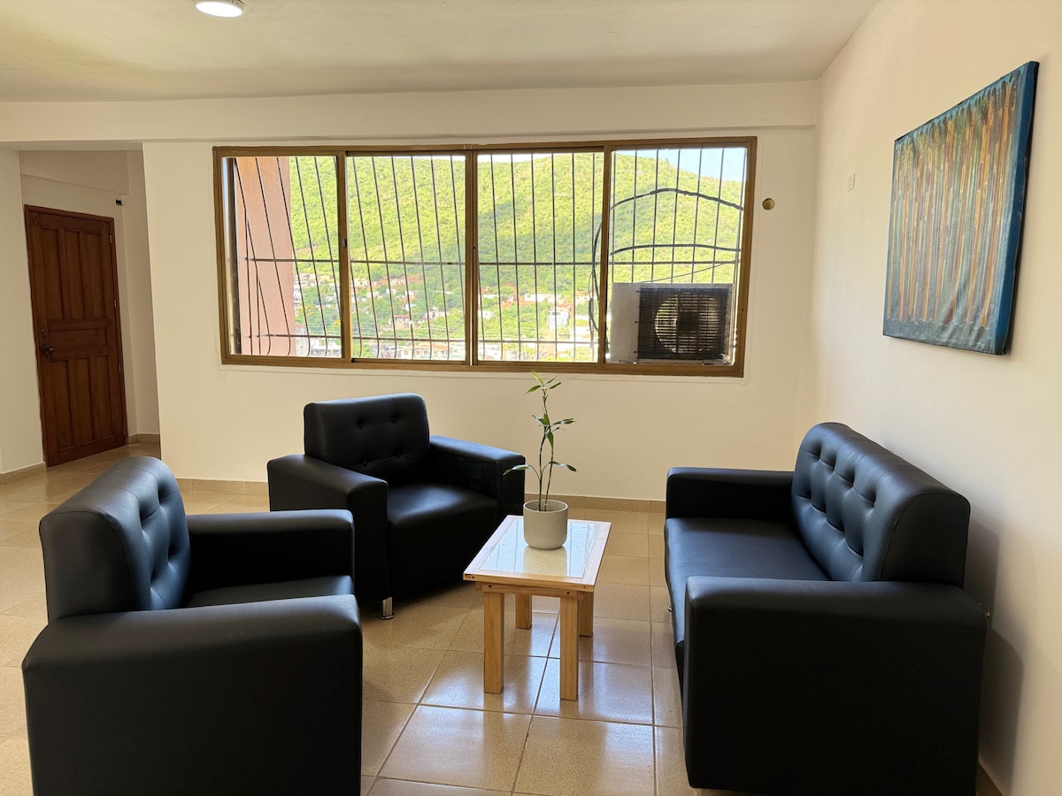 cómodo y amplio apartamento con vista al mar, equipado con todo, cercano a zonas comerciales, pollos Arturo y McDonald's. Cuenta con internet y agua constante. A tan solo 10 minutos de la playa.Ideal para compartir con familias y amigos