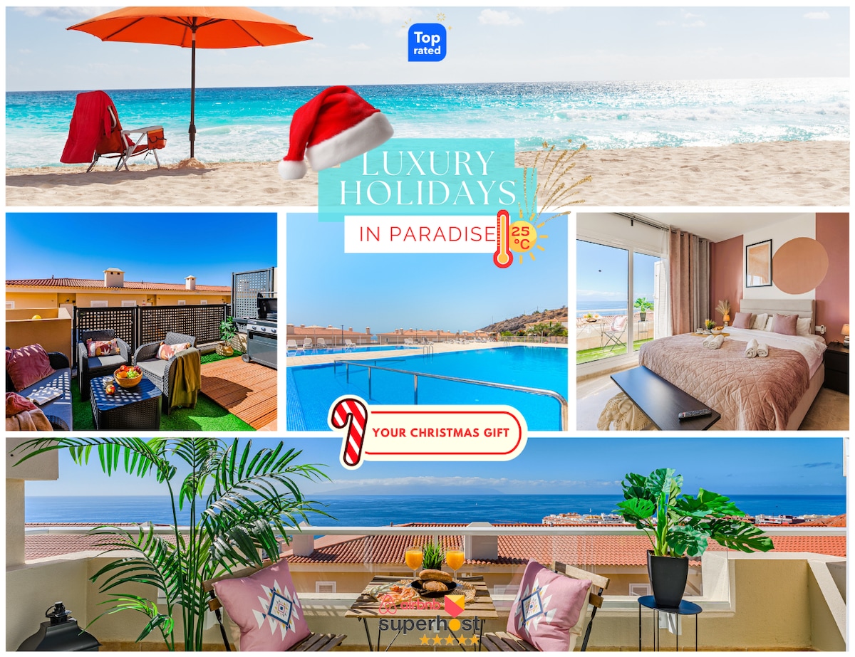 トロピカルな装飾、とても明るくモダンな8階のバケーションレンタル。 ビーチから文字通り30秒以内です。 家具付きのバルコニーテラスからは、壮大なオーシャンビューとテイデ火山の素晴らしい景色を眺めることができます。 ダブルベッド1台とソファーベッド1台の素敵なワンルームです。 洗濯機、光ファイバーWi-Fiネットワーク(600 Mbps)。ロビーでの24時間対応のコンシェルジュサービス、テニスコート、高層プールサンルーム2室、大きなプール1室、屋外ジムなど、すべてのアメニティに近いです。