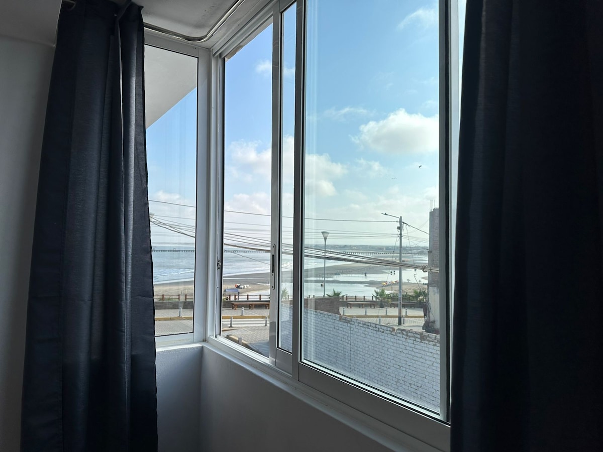 Relájate con toda la familia en este alojamiento con vista al malecón turístico y vista al mar de Puerto Malabrigo. Barra con lavador y fríobar para alistar alimentos mas no se puede cocinar.