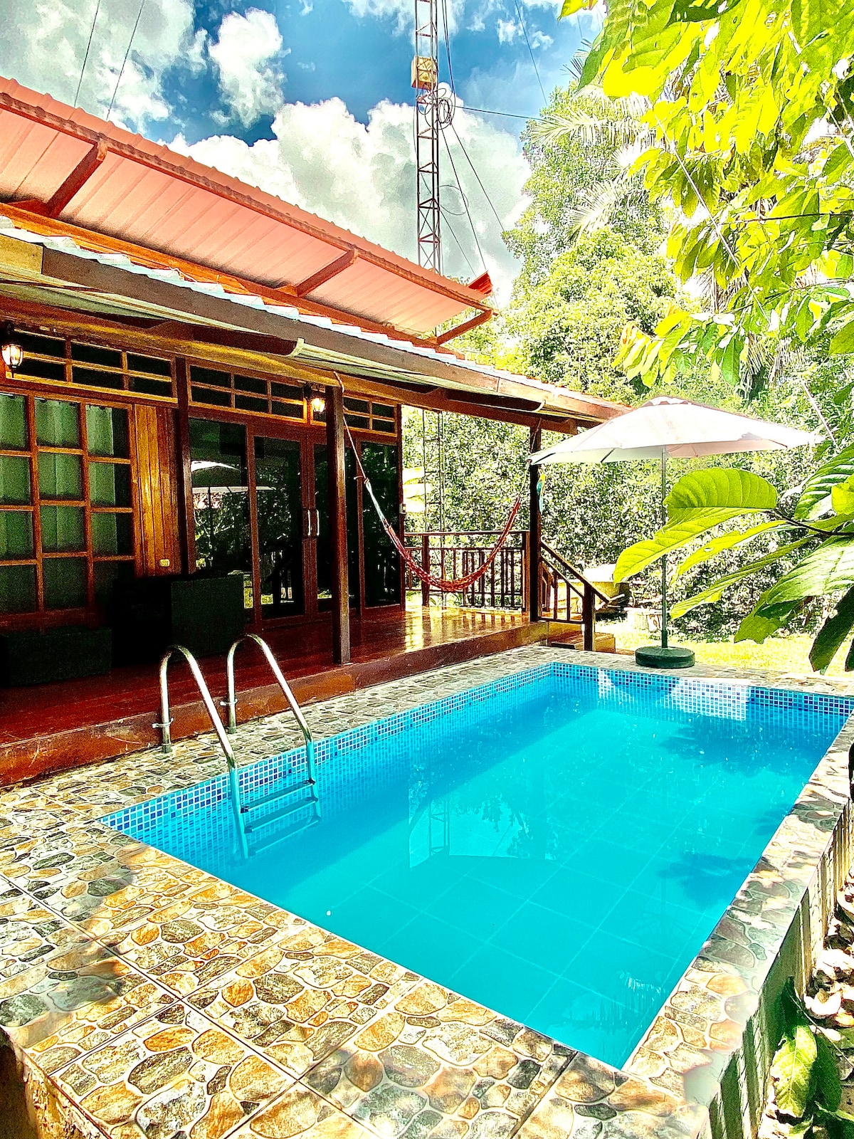 Casa de campo con piscina y vista al rio Tambopata