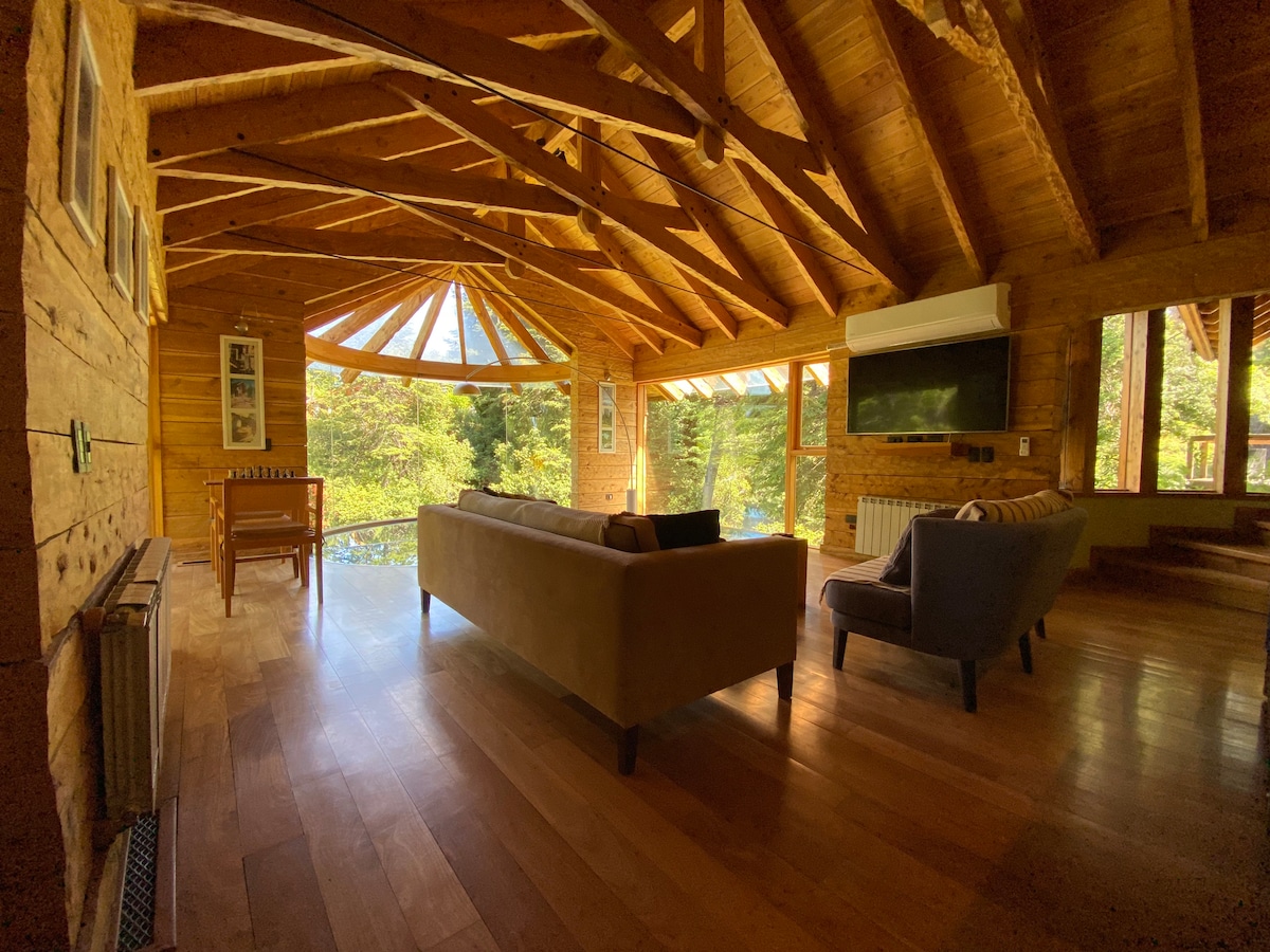 この静かでエレガントな空間でリラックスしてください。ドアを開けてリマイ川の音を聞くだけで、休息とリラックスができます! パタゴニアでの滞在に必要なものがすべて揃った空間です。バリローチェから20 km、ビジャ・ラ・アンゴストゥラから60 km、リマイ川からすぐです。 静かな環境で、駐車場と屋外ストーブがあります。住宅街です。 2 km先にはスーパーマーケット、ガソリンスタンドなどがある町、ディナ・ウアピがあります。 お待ちしております!