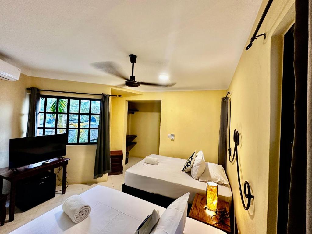 Perfecta para amigos, familias pequeñas o parejas que viajan juntas, esta habitación ofrece dos camas queen size en un espacio amplio y funcional. Esta habitación es ideal para quienes desean descansar después de explorar la Quinta Avenida o disfrutar de la playa, contando con aire acondicionado, wifi gratuito, y acceso a nuestra barra de café y agua purificada en recepción, además del beneficio de estar en una de las zonas mejor conectadas de Playa.
