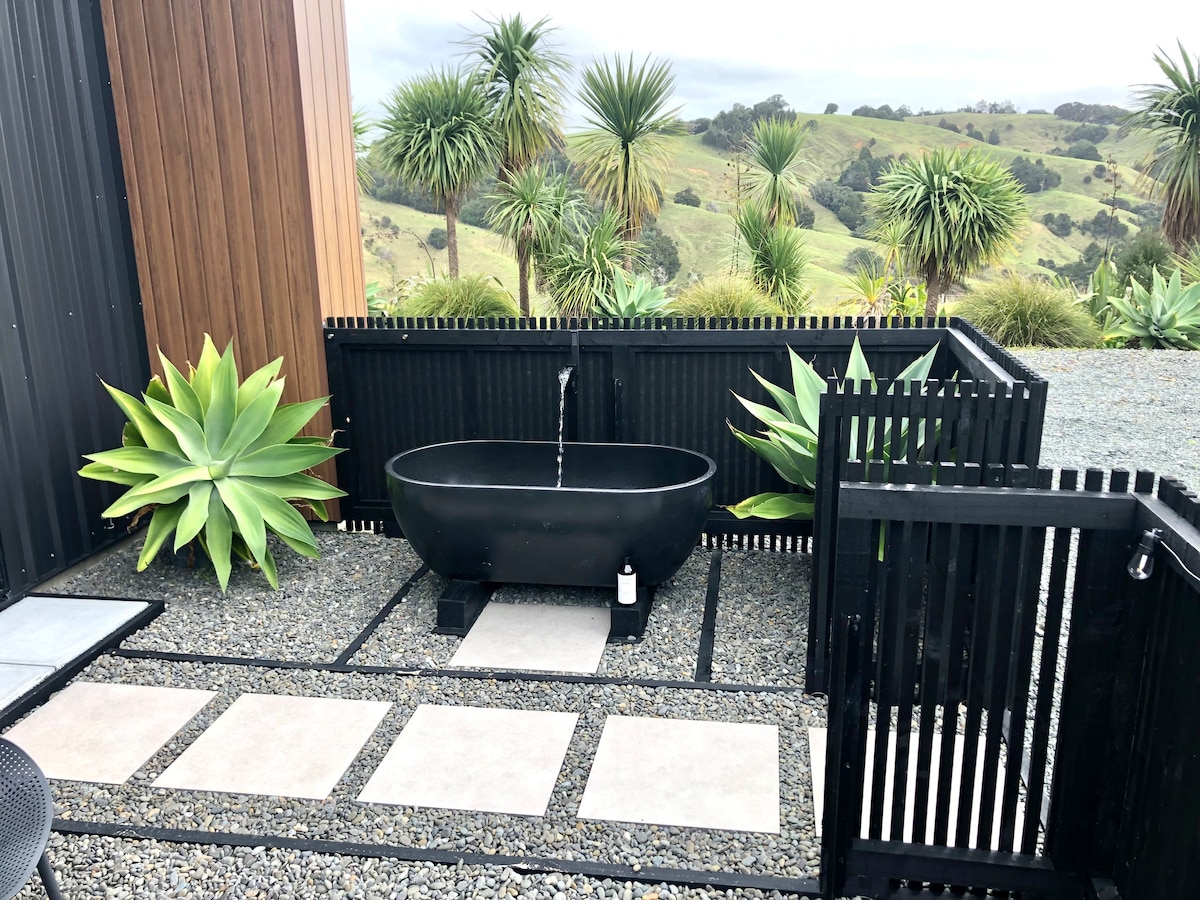農場の景色が広がる、薪を燃やすシダーウッドの屋外スパを備えた、居心地の良いプライベートコテージです。星空の下でリラックスするのに最適です。 オープンプランのリビング、快適なソファ、設備の整ったキッチン、キングサイズのベッド、パノラマの窓をお楽しみください。朝日を浴びて目を覚まし、敷地内を散策したり、近くのビーチやマタカナ・ファーマーズ・マーケットを訪れたりできます。ロマンチックな休暇や平和な旅行に最適です。 車ですぐの場所に魅力的なマタカナ村と美しいオマハビーチがあります。