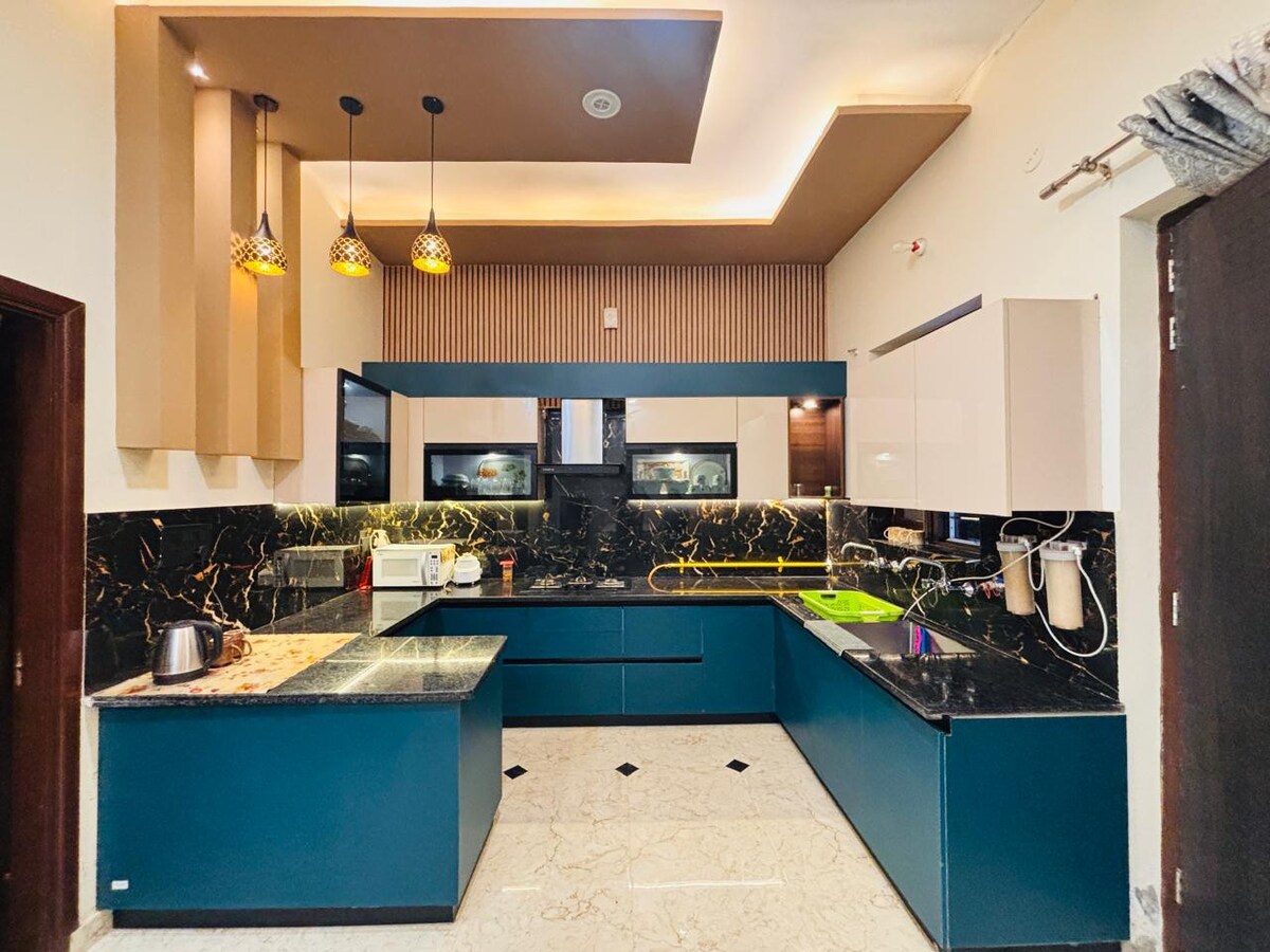 伝統と現代性が鮮やかに融合した、考え抜かれたデザインのアパートに足を踏み入れてください。ティール色のインテリアと厳選されたインドアートのコレクションが調和しています。見事なマドゥバニの絵画、抽象的なアート作品、ジャイプル中から集められたプリントで飾られたこの空間は、伝統と創造性を巡る視覚的な旅です。 一人旅の方、カップル、アートを愛する探検家の方など、このアパートは居心地が良くスタイリッシュな環境で、モダンな滞在の快適さをすべて備えています。
