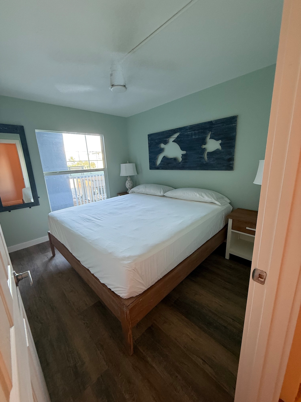 モーテルの客室は、ビーチの静かな色にインスパイアされ、爽やかで清潔です。 ビーチに面していないオフィスの上の2階にある共用廊下を共有する4つのユニットのうちの1つです(エレベーターはありません)。 階段を下りて建物の周りを歩くと、砂浜に足を踏み入れることができ、湾の素敵な景色を楽しむことができます。 私たちのビーチフロントモーテルは1959年に建てられ、1960年から私たち家族が経営しています。 ゲストは毎年戻ってきて、私たちのロケーションを楽しんでいます。