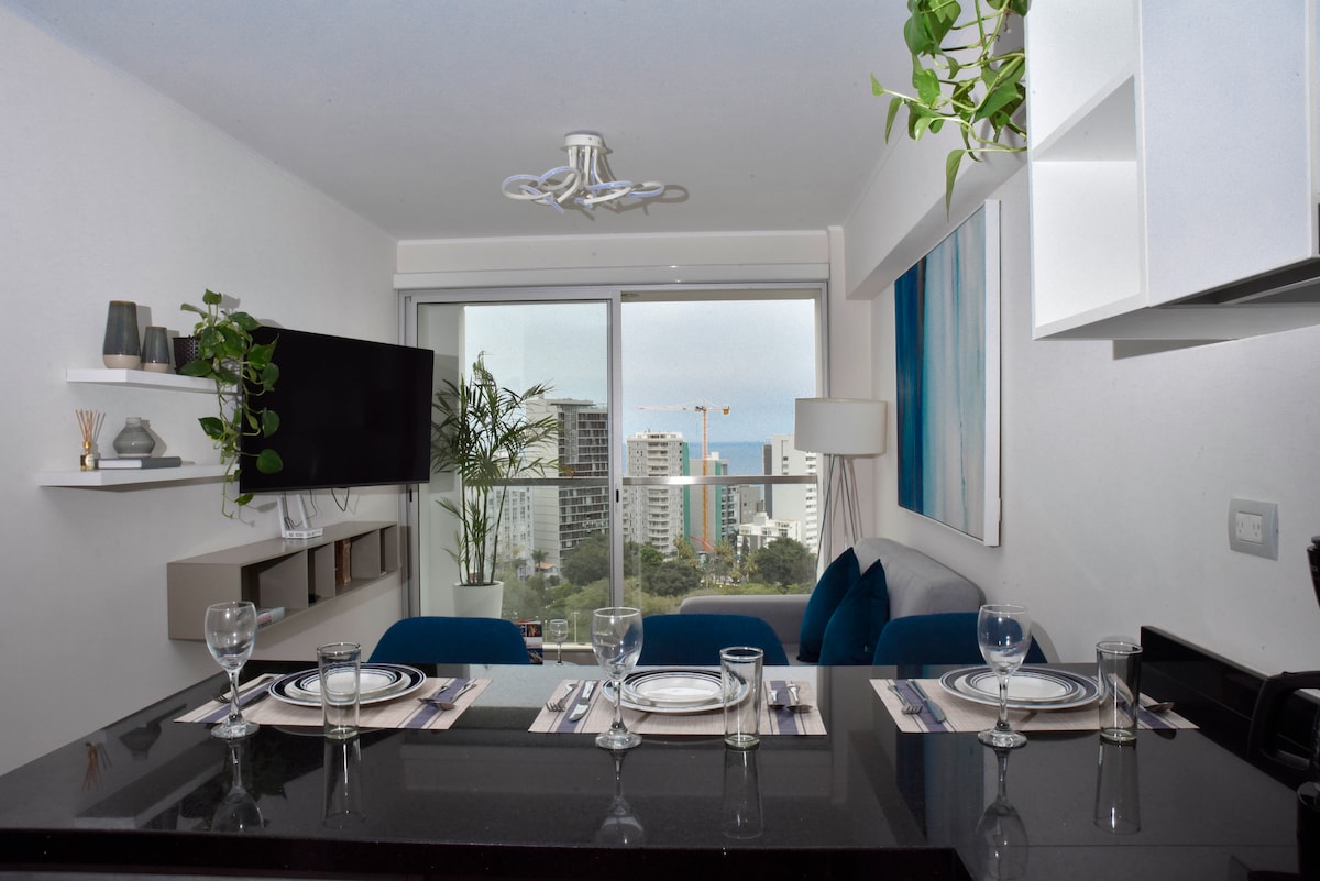 リマでのご滞在をお楽しみください。このモダンで清潔、安全で美しいアパートは、観光地の近く、空港からわずか25分、マルチイベントスペースのコスタ21とアリーナ1から数ブロックの場所にあります。 建物の最上階には、海を望む大人用の大きなプール、子供用のプールとゲーム、ジム、ゲームルーム、映画館、サウナ、24時間体制のプライベートセキュリティなど、素晴らしいソーシャルエリアがあります。