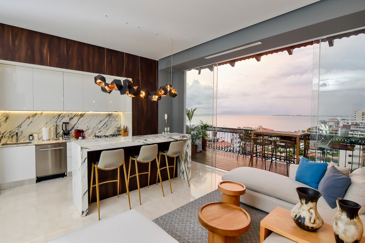 オーシャンビュー、屋上からの夕日、プエルト・バジャルタの魅力がすぐそばに。このモダンな1ベッドルームのコンドミニアムは、ゾナ・ロマンティカの中心部にある豪華な105セイルビューの11階に位置しています。プラヤ・ロス・ムエルトスからわずか3ブロックです。外に出ればカフェ、ギャラリー、ビーチクラブ、ナイトライフが楽しめます。帰宅したら、静かな高台から広大な太平洋の景色を眺めましょう。バルコニーで朝のコーヒー、インフィニティプールでの午後、夕方には太陽が海に溶け込むのを眺める。すべての上に浮かんでいるかのよう。