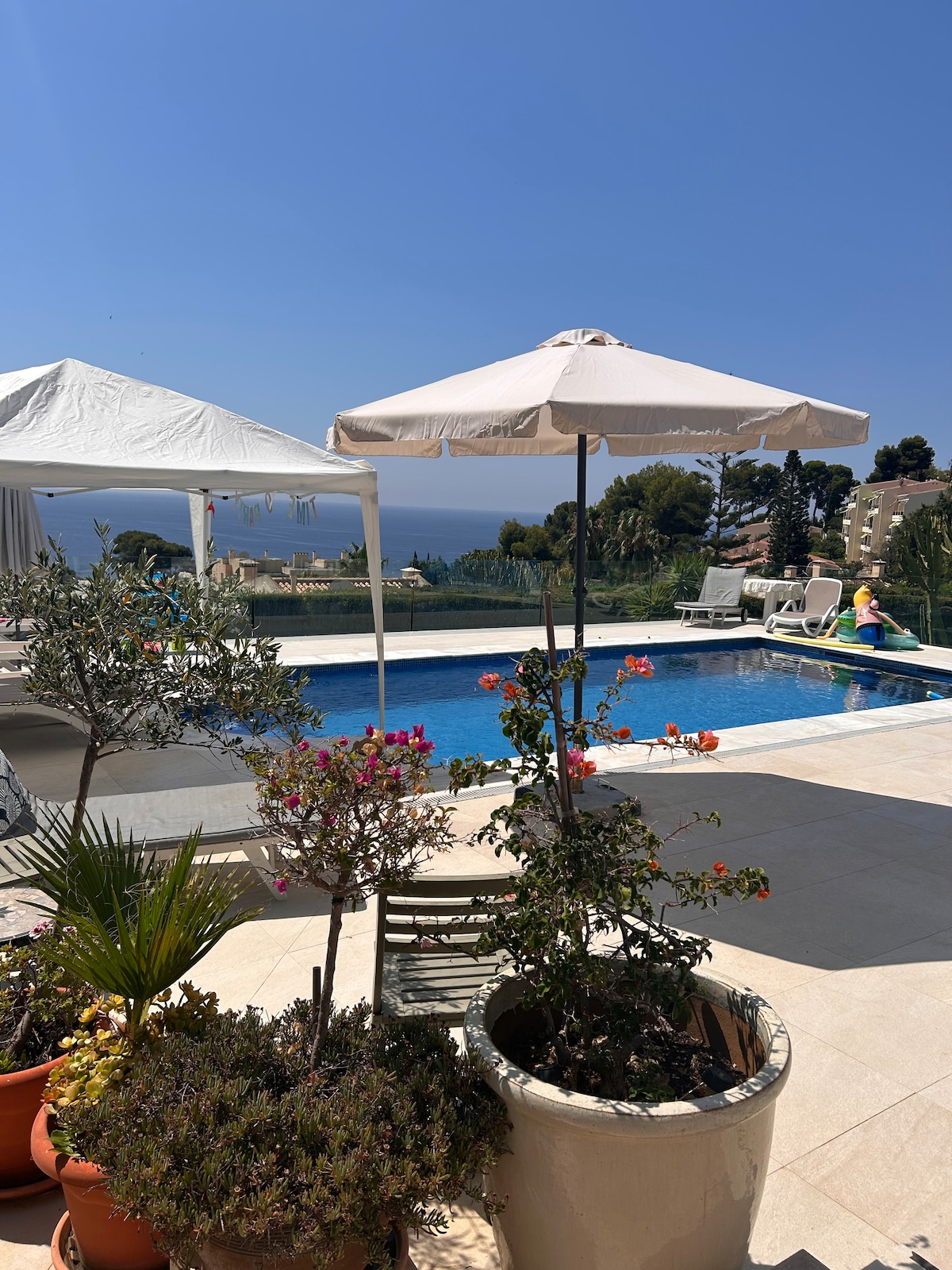 Experience the quintessential coastal getaway in this luminous Andalusian style villa, where every room is a window to the breathtaking 180º vistas of the Mediterranean. Enjoy the sunshine all day! The 3-bedroom house has a private salt water pool with optional heating and terraces with views all around. Enjoy the fully equipped kitchen, bright living area & stylish furniture. Garage and wifi available. Enjoy this beachfront airbnb year-round!