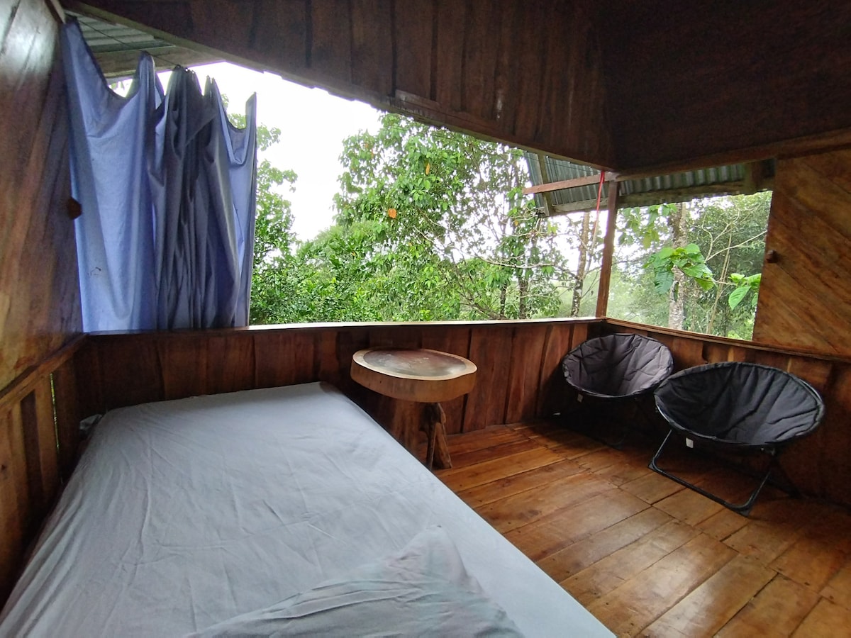 Esta es una cabaña construida totalmente de troncos de madera, de acabados rústicos, muy cómoda y acogedora. Está ubicada en la Finca Tello (20,000 m2- 5 acres) donde la conservación de los árboles y la naturaleza ha sido una prioridad durante los últimos 30 años. Cuenta con una pequeña muestra del bosque virgen de la zona. El mejor ambiente para conectarse con la naturaleza y cargar aire limpio y energía positiva. Fauna y flora te darán la bienvenida y te acompañarán durante toda tu estadía