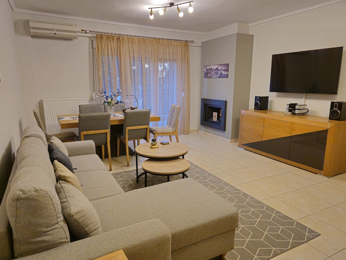 This is our lovely 55sqm apartment next to Ipokratio hospital, suitable for up to 4 adults and a child . In a residential area and family building 10' by bus from the city center ( next to the bus station too). It is on the second floor with elevator, fully equipped and suitable to host short and long term rentals. The house was renovated in Dec of '23. Hosted by the experienced DoorMat team. We are here to assist you, so don't hesitate to text us for anything you need !