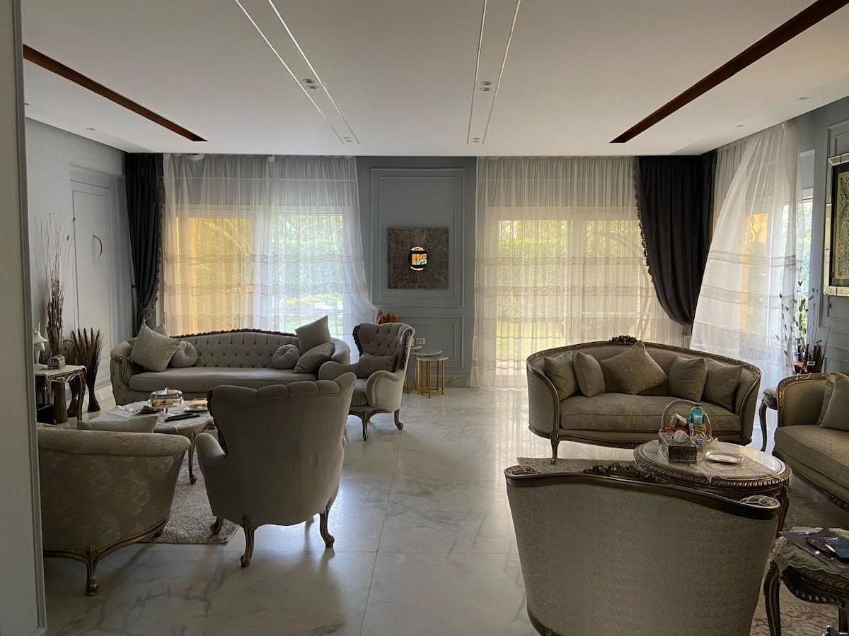 この素晴らしい宿泊施設には家族全員をお連れください。楽しむスペースがたくさんあります 戦略的な場所はピラミッドから20分、大エジプト博物館から15分、アラブモールやエジプトモールなどの有名なモールから離れています。