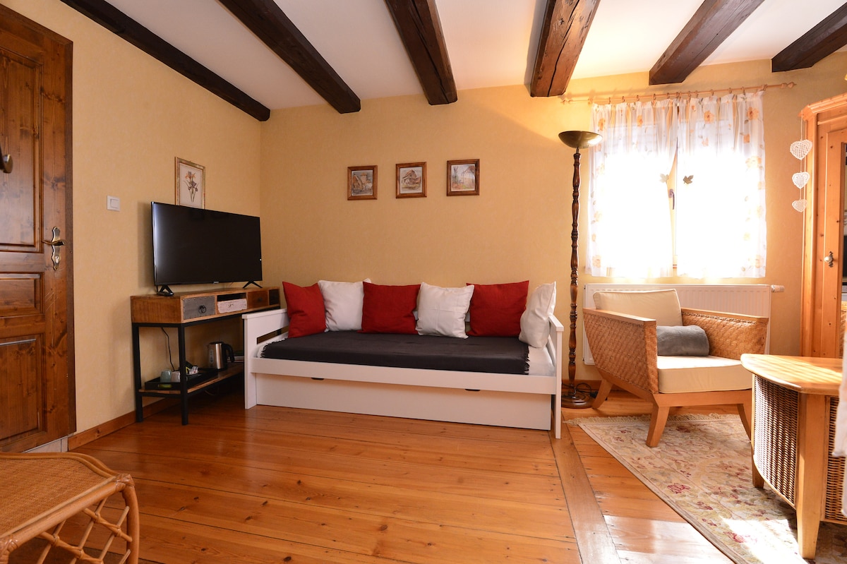 ストラスブールの中心部、歴史地区、欧州機関から10分の場所にある、17世紀の典型的なアルザスの家で、静かで魅力的な環境でお休みください。 45m2の家族用コテージHansiにぜひお立ち寄りください。全ての装飾が丁寧に施されています。 ご自宅で朝食をお召し上がりいただくことも可能です。 独立した玄関、広い寝室、リビングルームのソファベッド(2x90X190 cm)、簡易キッチン、バスルーム、トイレ。