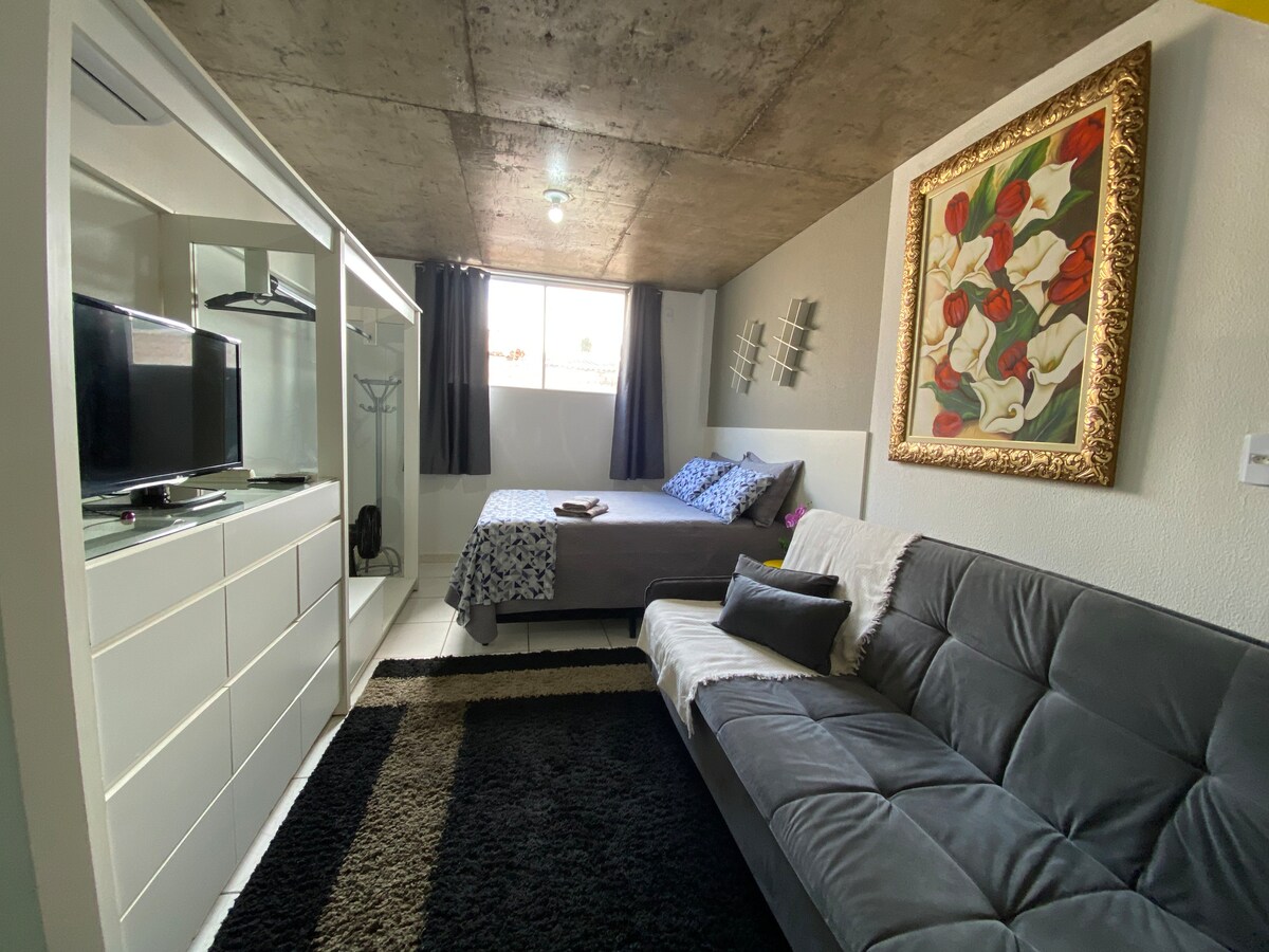 レジデンスが上手に受け取れるように設定されています! ! エアコン、クローゼット、テレビを備えたベッドルーム。 コーヒーメーカー、冷蔵庫、シンク、テーブルを備えたキッチン。 タンクと衣料品ラインを備えたサービスエリアへのアクセス。 スーパー、薬局、ガソリンスタンド、広場、一般商業施設への住宅近く。