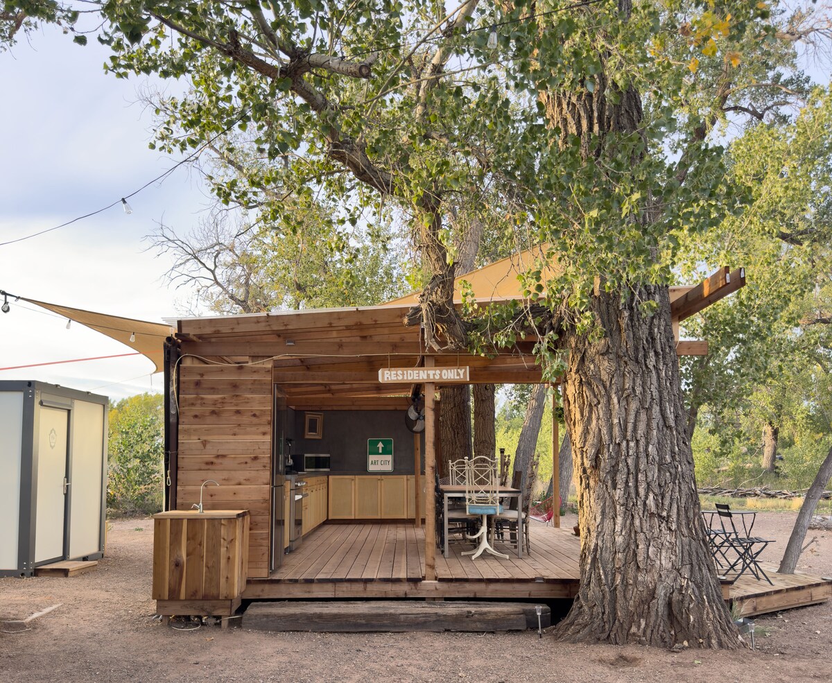 豪華なクイーンベッド、専用バスルーム、簡易キッチン、ワークスペースを備えた、新しく考案されたトラベルトレーラーでボヘミアンな豪華さを体験してください。 専用デッキからは、40エーカーの彫刻庭園と数マイル続く散歩道が開けます。ドライサウナと木々に囲まれた屋外シャワーでリラックスしましょう。 開放的な空の下、共用の屋外キッチンでお料理を作りましょう。 この居心地の良い天国は、芸術的なデザインとモダンな快適さを融合させ、創造的な逃避を実現します。
