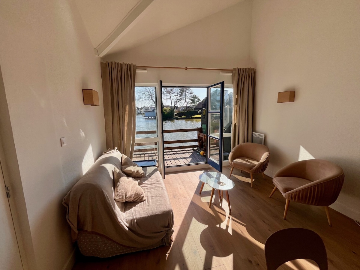 Belle Dune村のPierre et Vacances ecovillageのメイン広場に位置し、35平方メートルのアパートを提供しています。 こちらは湖の景色が一階にあります アパートは「エントランスホール」で構成されています 2段ベッドのログハウスが1台 バスルーム、トイレ オープンキッチン、ダブルソファベッド付きの宿泊先 水生エリアと湖を見下ろす7平方メートルの2つのバルコニー アクアクラブプールが開いています!エントリーは含まれていません。