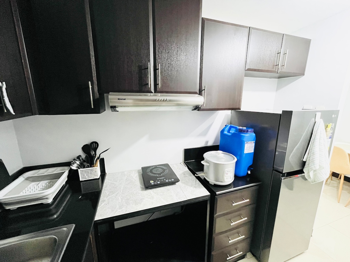 67sqm. With huge balcony facing playground and other amenities. All rooms have smart t.v. also in the living room. all rooms have split type aircons and also one in the living room. one toilet room. With Bluetooth speaker and microphone at the sala. 4 seater dinning table. Complete kitchen tools. With own washing machine at the drying cage area. With iron. With hair dryer. With shower heater. With refrigerator. With microwave. with playstation. with towels.