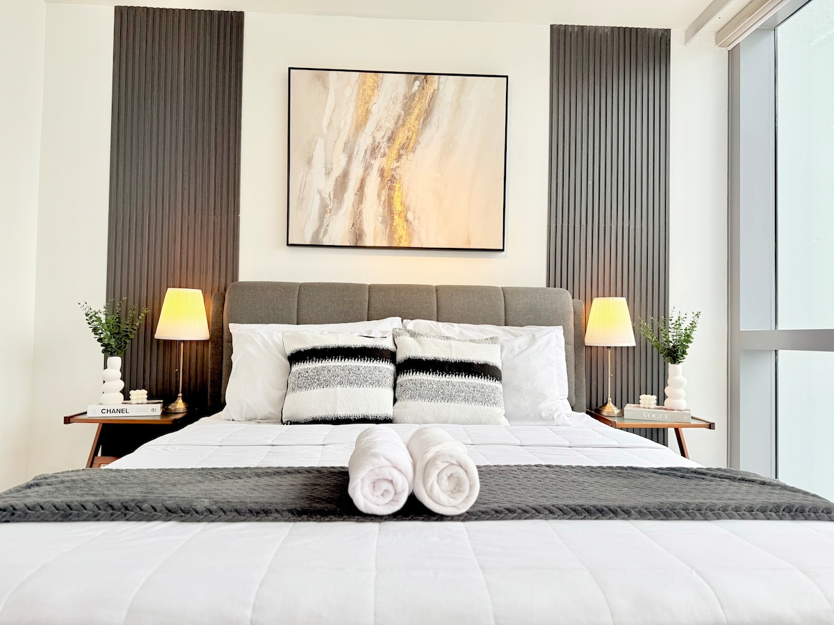 Welcome to our stylish Airbnb in the heart of Bonifacio Global City (BGC)! BGC is known for its premium location and high accommodation costs—but with us, you’ll enjoy the best value without compromising comfort or quality. ✨ Just a 3–5 minute walk to malls, shops, and restaurants ✨ Free access to the pool & sauna ✨ Ensuite washer and dryer for your convenience ✨ Excellent transportation options nearby Enjoy a comfortable, hassle-free stay at an unbeatable price. Book now!