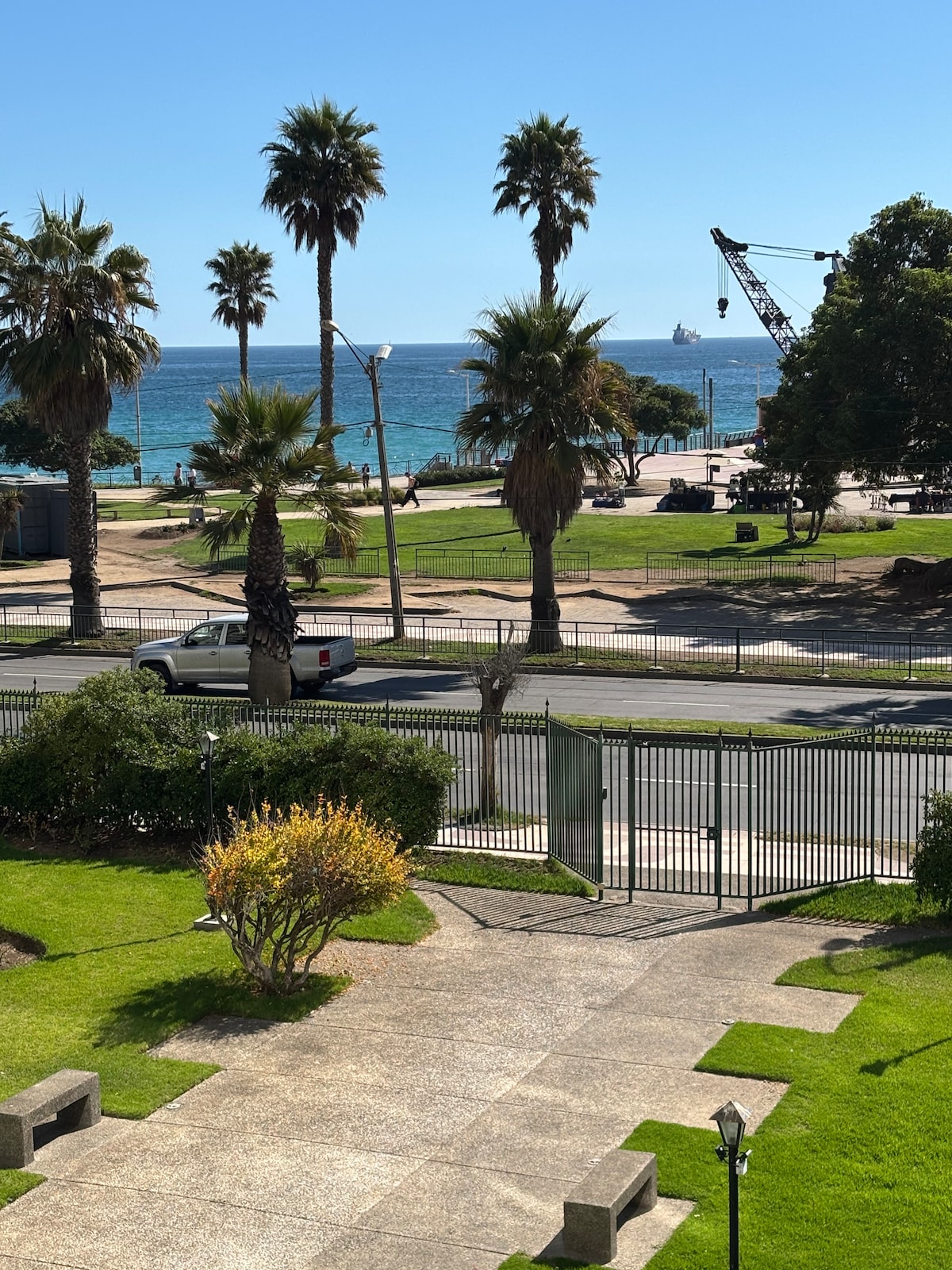 Perfecto departamento con vista privilegiada frente al mar. Ubicación inmejorable, con estacionamiento privado y equipado con todo lo necesario para pasar increíbles vacaciones en Viña del Mar. Avenida San Martin, primera línea de playa. Acceso a jardín exclusivo, un espacio verde donde podrás relajarte y disfrutar de la tranquilidad. Cercano a supermercado/restaurantes/bares/Casino Enjoy de Av. San Martín, a 4 cuadras de Mall Marina Arauco y 2 cuadras de Avenida Libertad, frente muelle Vergara.