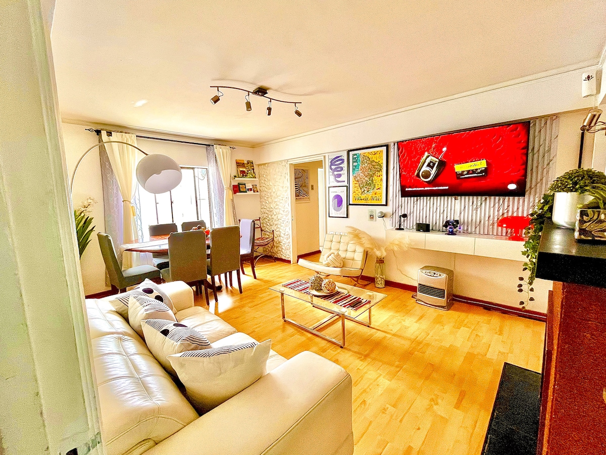 Departamento ex estudio de diseño en Cerro Alegre, conserva su estilo rústico, cercano a cafés y restoranes, en un sitio céntrico, turístico y patrimonial. Tiene 1 dormitorio principal con cana matrimonial, un dormitorio con cama individual y baño privado y un livingroom que puedes usar con un sofá cama. A 2 cuadras del Metro y Supermercado. 2 cuadras de Plaza Sotomayor y el puerto. NO hay escaleras para llegar! Muy fácil acceso
